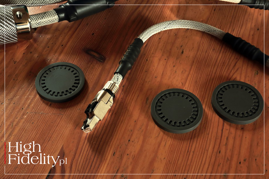 Jednocześnie jednak postęp w tej dziedzinie jest stały, znaczący i idzie w dobrą stronę. Dźwięk z serwisów streamingowych w rodzaju Tidala jest już na tyle dobry, że z powodzeniem wykorzystuję to medium do testu produktów audio. I właśnie pod tym kątem, już od dłuższego czasu, rozglądałem się za systemem, który wyraźnie poprawiłby jakość przekazu – chodzi mi o system routingu i przesyłu sygnału ethernetowego, czyli przełącznik LAN oraz kable LAN. Myślę, że mi się to udało. ▌ SYSTEM POZNAJMY BOHATERÓW TEGO SPOTKANIA. Podstawą systemu o którym mowa jest przełącznik LAN, Silent Angel N16 LPS. Zasilany jest on napięciem 230 VAC, trzeba było więc dobrać do niego kabel zasilający AC. Zdecydowałem się na model TPL-2000A japońskiej firmy TiGLON. Chcąc pozostać w ramach tej samej filozofii i tych samych technik, poprosiłem o przysłanie kabli LAN TPL-2000L tej samej firmy. Pozostało mi tylko postawić na czymś router – nie ma on nóżek. Brałem pod uwagę małe kostki HQ-4firmy Acoustic Revive, wykonane z drewna Hickory, jednak dosłownie kilka dni przed odsłuchem otrzymałem coś jeszcze lepszego – najnowsze podkładki RKI-5005 tej samej firmy. Wykonane z silikonu z dodatkiem minerału o nazwie ‘Kiyoh-stone’ są czymś w rodzaju „szwajcarskiego scyzoryka” – sprawdzą się zawsze i wszędzie. ⸜ Silent Angel N16 LPS Testowany przeze mnie w 206. numerze HIGH FIDELITY pozostawił po sobie bardzo dobre wrażenia (16 czerwca 2021, czytaj TUTAJ). Oferował wysokiej klasy dźwięk, ale zwrócił moją uwagę na budowę mechaniczną – to urządzenie przystosowane do pracy w systemach przemysłowych. Oferuje on szesnaście portów podzielonych na dwie „strefy”. Każda z nich może pracować niezależnie, izolując dwa systemy, na przykład telewizyjny i audio. Ale możemy je połączyć szeregowo, dzięki czemu sygnał LAN jest dwukrotnie taktowany, czyli zmniejszamy jitter w dwóch krokach, nie w jednym. A, dodajmy, źródłem sygnału zegara jest referencyjny, stabilizowany temperaturowo i mechanicznie zegar taktujący TCXO. ⸜ TiGLON TPL-2000A Po przetestowaniu kabla zasilającego TiGLON TPL-2000A wiedziałem, że powinien on podstawą systemu, o którym mowa. Świetnie sprawdza się ze wszystkimi urządzeniami, ale użyte do jego budowy elementy, w tym ekran z folii naparowanej magnezem, predestynowały go do pracy w miejscach, w których ważne jest jak najlepsze tłumienie szumów wysokoczęstotliwościowych (RFI). Jest to referencyjny kabel zasilający tego japońskiego producenta, w którym przyłożono się do każdego elementu budowy. ⸜ TiGLON TPL-2000L Kiedy już uformowała się w mojej głowie idea utworzenia systemu wokół przełącznika Silent Angel N16 LPS, kiedy pomyślałem, że świetnym zasilaniem dla niego byłby kabel TiGLON TPL-2000A, naturalnym krokiem było dla mnie sięgnięcie po kable LAN tego producenta, również należące do referencyjnej serii ‘2000’. Jest to jedyny element tego systemu, którego wcześniej nie testowałem i sięgnąłem po niego trochę „w ciemno”. Znając jednak inne produkty tego producenta, rozumiejąc stosowane przez niego techniki byłem spokojny o wynik. TPL-2000L (L=LAN) jest trzecim, opracowanym na potrzeby TiGLON Premium Line 2000, czyli topowej serii, kablem tej firmy i korzysta ze wszystkich opracowań, które znajdziemy także w kablu zasilającym TPL-2000A. Przewodnikiem jest miedź wykonywana w procesie o nazwie dip-formed oxygen-free copper (DF-OFC). Otoczony jest on opatentowanym ekranem magnezowym („Magnesium Shield”), a zewnętrzny płaszcz został poddany obróbce minimalizującej jego własności elektrostatyczne, stosowanej przede wszystkim w przemyśle awiacyjnym. Kable poddawane są wygrzewaniu w firmowej technice Hyper Saturated Energizer (HSE). Warto zwrócić uwagę na znakomite wtyki. Ich producentem jest niemiecka firma Telegärtner i są one poddawane dodatkowej obróbce (firma nie ujawnia jednak szczegółów, jakiej). Na obydwu końcach kabla widać opatentowane przez TiGLON filtry wykorzystujące magnez – Advanced Magnesium Filter (AMF). Jak się po jakimś czasie okazało ten japoński producent proponuje dwa kable o tym samym symbolu, a nie jeden. Jak pisała mi pani Ayako Sakamoto z firmy TiGLON, TPL-2000L występuje w dwóch wersjach: FOR AUDIO oraz FOR DATA; ta pierwsza na pudełku opisana została „TPL-2000L Pro”, a druga po prostu nazwą modelu. Obydwie mają bardzo podobną budowę elektryczną i mechaniczną, ale nie są tożsame. Wersja „Pro” jest grubsza, sztywniejsza i ma biały płaszcz zewnętrzny, a „regularna” szary. Pierwsza z nich została zaprojektowana z myślą o jakości dźwięku. Aby to osiągnąć trzeba było zmienić kilka elementów w jego budowie, które gwarantują synchronizację między każdym typem urządzeń. Niestety nie wszystkie urządzenia są w stanie się przez ten kabel zsynchronizować, dlatego dostępna jest też klasycznie zbudowana wersja FOR DATA. Przyjrzę się im obydwu. Do systemu potrzebowałem co najmniej trzech kabli: jednego biegnącego od routera firmy Orange, do którego sygnał internetowy przesyłany jest kablem optycznym (600 Mb/s), drugiego łączącego przełącznik Silent Angel N16 LPS z odtwarzaczem plików MYTEK BROOKLYN BRIDGE i trzeciego, łączącego Silent Angel z serwerem muzycznym. Mówię o trzech kablach, choć tak naprawdę potrzebowałem czterech. Już wyjaśniam.