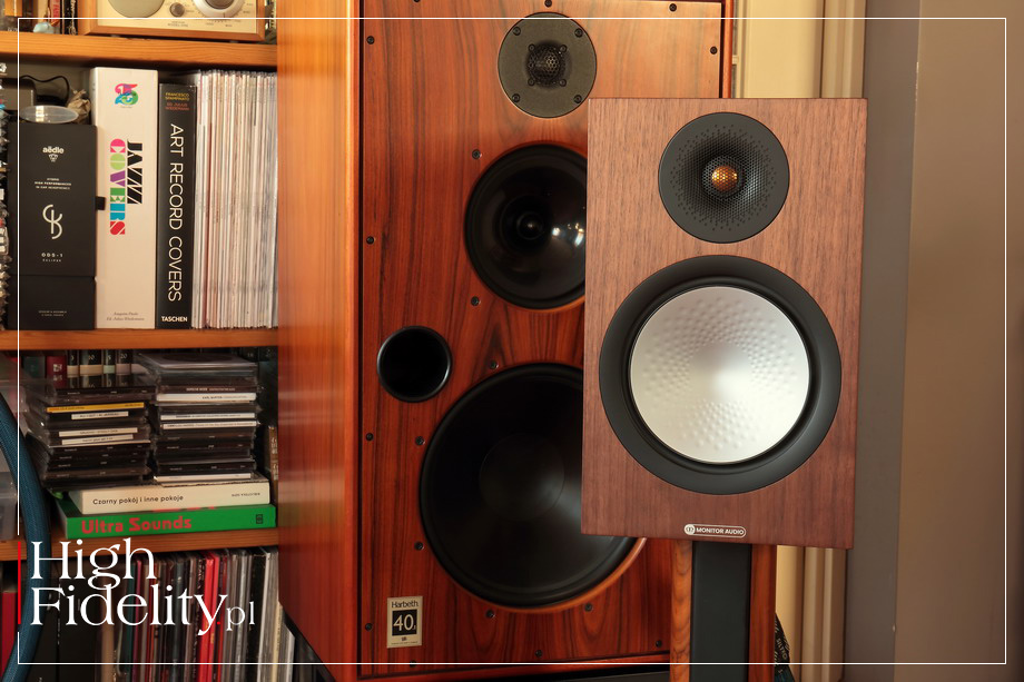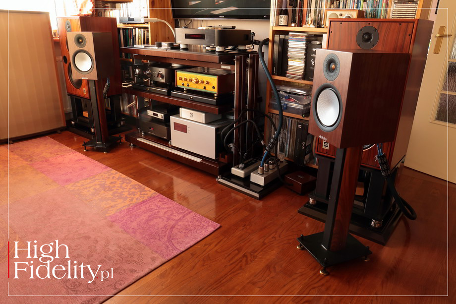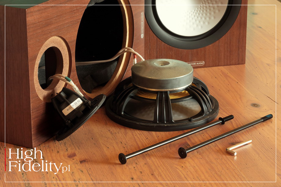 ⸜ PRZETWORNIKI W Silver 100 G7 wysokie tony odtwarza nowa wersja, rozwijanego przez Monitor Audio od lat, głośnika wysokotonowego C-CAM (Ceramic-Coated Aluminium Magnesium). Nie wiem, czy państwo pamiętacie, ale jeszcze z dziesięć lat temu metalowe membrany były przez świat audiofilski przyjmowane z nieufnością. A to dlatego, że choć sztywne i lekkie, miały irytujące rezonanse poza pasmem przenoszenia, które trudno było wytłumić. Okazało się to jednak kwestią czasu i dzisiaj producenci radzą sobie z tym doskonale. Wprowadzony do produkcji już w 1991 roku C-CAM ma łączyć sztywność i lekkość metalowej membrany z jej wytłumieniem za pomocą warstwy ceramicznej – to ona odpowiada za wytłumienie owego rezonansu. Zastosowany w serii Silver 25 mm przetwornik wysokotonowy wykonany w jest technice C-CAM i ma złoconą powierzchnię kopułki. Przeprojektowano w nim konstrukcję neodymowego magnesu i tylną komorę, które to zmiany – jak mówi producent – są niewidoczne, decydują jednak o dźwięku. Przed głośnikiem umieszczono falowód Uniform Dispersion Waveguide II o zmienionym profilu. Nowe są również pierścienie zaciskowe. Podział między głośnikami ustalono na 2,4 kHz, a więc dość wysoko. Poniżej dźwięk reprodukowany jest przez 203 mm głośnik nisko-średniotonowy z membraną RST II – Rigid Surface Technology, stosowaną przez tę firmę od 2000 roku. Producent informował wówczas, że pomysł ten inspirowany jest japońską sztuką Origami, która „pokazuje, jak bardzo lekki materiał (np. papier) można wzmocnić i usztywnić, wykonując drobne i precyzyjne zagięcia na jego powierzchni” (Introducing RST (Rigid Surface Technology), www.MONITORAUDIO.com https://www.monitoraudio.com/en/blog/introducing-rst-rigid-surface-technology, 1 stycznia 2000; dostęp: 26.10.2021). Membrana w Silver 100 G7 wykonana jest więc ze stopu aluminiowo-magnezowego, pokryta warstwą ceramiczną i ma powierzchnię przypominającą piłkę golfową. Wgłębienia mają dodatkowo usztywnić jej powierzchnię. Służy temu również zlikwidowanie nakładki przeciwpyłowej – membrana nie jest dzielona, a cewka doklejana jest do niej od tyłu. Aby dodatkowo usztywnić jej mocowanie w obudowie, obydwa głośniki dokręcane są od niej za pomocą pojedynczej, wychodzącej z tyłu, śruby. To znakomite rozwiązanie stosowane jest przez MA od lat. ⸜ OBUDOWA Obudowę testowanych kolumn wykonano z płyty MDF oklejonej fornirem. Do wyboru mamy jeden z trzech fornirów z prawdziwego drewna – wraz z serią G7 dodano dwie nowe okleiny z prawdziwego drewna w kolorze orzecha i „popiołu”(ash). Okleina wygląda naprawdę bardzo dobrze. Wylot bas-refleksu umieszczono na tylnej ściance. Na obwodzie ma on charakterystyczne, podłużne wgłębienia, które z jednej strony go usztywniają, z a drugiej zmniejszają szum powodowany przez przepływ powietrza. Rozwiązanie to nazwano HiVe (High Velocity Reflex Port) i od 2006 roku dostępne jest ono w wersji HiVe II. Siódma generacja serii Silver wyposażona jest w nowe maskownice i zmienione mocowanie przetworników, minimalizujące widoczne elementy wokół nich. Specjalnie dla niej opracowano nowe, mocowane magnetycznie maskownice z materiału „o splocie klasy premium”, które – jak czytamy dalej w materiałach prasowych – „zapewniają wizualną głębię i teksturę, a także schludny wygląd zewnętrzny”. W każdym modelu z tej serii zaimplementowano nowe logo. Kolumny mają – według producenta – szerokie pasmo przenoszenia, zaczynające się już przy 35 Hz i kończące przy 35 kHz. Powinny być też dość łatwe do wysterowania, ponieważ producent określił ich impedancję nominalną na 8, a minimalną na 4,9 Ω – ta przypada przy 170 Hz. Sprawdzimy to. Pomimo to firma zaleca stosowanie raczej mocnych wzmacniaczy – od 40 do 120 W. Kolumny te, choć stosunkowo niewielkie, zagrają też naprawdę głośno. W danych technicznych Monitor Audio deklaruje, że w ich przypadku maksymalny poziom ciśnienia dźwięku (SPL) wynosi 106 dB. Okablowanie wewnętrzne wykonano z miedzianej plecionki OFC, a zwrotnicę zmontowano na płytce drukowanej, przykręconej do tylnej ścianki. Wnętrze obudowy wytłumiono gąbką, a pomiędzy głośnikami poprowadzono wręgę usztywniającą. Jak widać, zmiany wprowadzone w serii G7 nie są rewolucyjne. Ale też nie na tym chyba firmie zależało. Ma ona w ręku kilka sprawdzonych rozwiązań, technik i technologii, w których widzi potencjał – na tyle duży, że od wielu, wielu lat je modyfikuje i poprawia. Najważniejsze są C-CAM, RST II, „single bolt-through” (to te pojedyncze śruby mocujące) oraz HiVe II. Poprawie uległa również estetyka produktu. I jedynie dość tanie zaciski głośnikowe mogłyby być lepsze. Producent od lat proponuje zaciski bi-wiring, uważając, że połączenie osobno głośnika wysoko- i nisko-średniotonowego daje określone korzyści. W instrukcji obsługi znajdą państwo dobrze napisany fragment, który to tłumaczy. ▌ ODSŁUCH ⸤ JAK SŁUCHALIŚMY Kolumny Monitor Audio Silver 100 G7 stanęły w miejscu, w którym najlepiej gra większość kolumn w moim domu, to jest w odległości 210 cm od siebie i 230 cm od miejsca odsłuchowego. Jest to zresztą zgodne z zaleceniami producenta, które znajdziemy w instrukcji obsługi: „Najlepiej byłoby, gdyby głośniki zostały ustawione w odległości około 1,8-3 m od siebie i minimum 91 cm od ścian bocznych”.