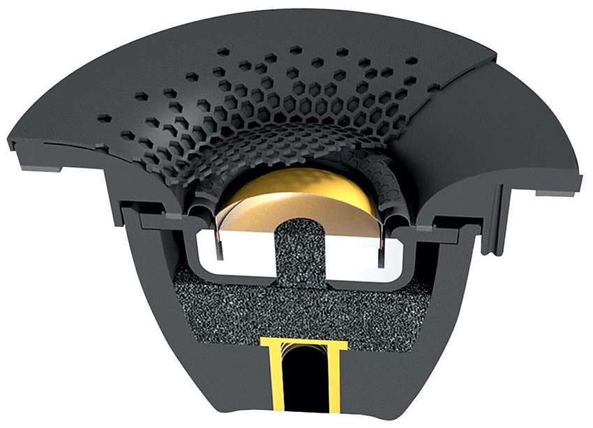Wśród tzw. „kluczowych cech” serii Silver G7, czyli ściągi dla niecierpliwych, firma wymieniała wybór wysokiej jakości wykończeń, w tym fornirów z prawdziwego drewna, zmodernizowany przetwornik wysokotonowy C-CAM, ale przede wszystkim szeroki wybór modeli wolnostojących i podstawkowych, w tym Dolby Atmos. I rzeczywiście – wybór jest doskonały, ponieważ otrzymujemy kolumny podstawkowe Silver 50 7G i Silver 100 7G, podłogowe Silver 200 7G, Silver 300 7G i Silver 500 7G, głośnik centralny Silver C250 7G, kolumny surround Silver FX 7G i głośniki Silver AMS 7G z obsługą Dolby Atmos. Kiedy spojrzymy na nowe kolumny w oczy rzuci się ich dopracowany projekt plastyczny. Choć wszystko w nich jest w jakimś stopniu znane z poprzednich generacji serii Silver, to jednak nowe okleiny, zmienione elementy wzornicze, takie jak siateczka przed głośnikiem wysokotonowym, inaczej wykonywane logo itd., nadają im szlachetności – widać, że jest to produkt nad którym długo pracowano i który jest dla firmy szczególnie ważny. ▌ SILVER 100 G7 KOLUMNY SILVER 100 G7 są jednym z dwóch w tej serii modeli podstawkowych (mówi się o nich również: półkowe). Mają one budowę dwudrożną i obudowę typu bas-refleks. Kolumny mają dobre proporcje i mierzą 375 x 230 x 332 mm. Bas-refleks ma w nich wylot z tyłu, co pozwala na uzyskanie niższych zniekształceń, ale został dobrany w taki sposób, aby kolumny mogły stać blisko tylnej ściany. W instrukcji obsługi poświęca się temu sporo miejsca, zwracając uwagę na możliwość użycia, dołączanych do kolumn, piankowych zatyczek. Jak w niej czytamy, jeśli głośnik ma stać w małym pomieszczeniu, na przykład 9 m2, lub w pomieszczeniu, o którym wiadomo, że wzmacnia odpowiedź basów, „pożądane może być zamontowanie zaślepki portu bas-refleks w głośniku, którego dotyczy problem”. Jednocześnie producent przed skorzystaniem z zaślepek zaleca eksperymentowanie z ustawieniem głośnika w pomieszczeniu. I dalej: