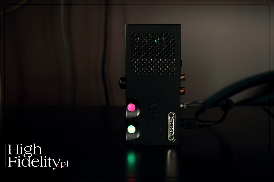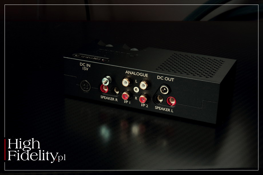 Urządzenie jest maleńkie i jest najnowszym produktem należącym do kompaktowych serii, których korzenie sięgają roku 1998, kiedy to ten angielski producent zaprezentował przetwornik cyfrowo-analogowy DAC64, który zmienił tę firmę na zawsze. Wzmacniacz jest przy tym genialnie wykonany i ma w sobie coś, co powoduje, że od razu wiemy, iż patrzymy na produkt klasy „premium”. Świadczy o tym nie tylko jakość wykonania samego urządzenia, ale i to, w jaki sposób jest ono pakowane. Jak już kiedyś pisałem, Chord Electronics był jednym z pierwszych producentów audio, który zrozumiał, że w czasach Apple’a udany produkt jest całościową propozycją, od opakowania aż do obsługi. ⸜ FUNKCJONALNOŚĆ Anni jest analogowym wzmacniaczem wyposażonym w dwa wyjścia słuchawkowe – typu „jack” ø 6,35 mm i „mini jack” ø 3,5 mm – a także w wyjścia głośnikowe. Te ostatnie, z braku miejsca, zrealizowano na 4 mm gniazdach znanych z produktów Naima i są to otwory w obudowie, do których możemy wpiąć wtyki typu banan lub BFA. Plus i minus są w nich blisko siebie, należy więc stosować banany z plastikowymi, wąskimi osłonkami. Wzmacniacz oferuje moc 10 W, przy obciążeniu 8 Ω. Urządzenie ma dwa analogowe, liniowe wejścia RCA (niezbalansowane). Obudowa została wykona z frezowanego, grubego aluminium. Z przodu mamy małą gałkę siły głosu, którą po naciśnięciu zmienimy wejście, i dwa wejścia słuchawkowe. Gałka jest zbyt blisko gniazd, przez co po wpięciu wtyku słuchawkowego operowanie nią nie jest zbyt łatwe. Od góry umieszczono dwie, kolorowe półsfery, rzecz niezwykle charakterystyczna dla tego producenta. Są one wskaźnikami i zarazem przyciskami. Jedna z nich wskazuje włączenie zasilania – zielony/czerwony – a druga wybrane wejście – niebieski/czerwony. Ta druga jest też przyciskiem wzmocnienia. Aby dopasować wzmacniacz do różnych kolumn urządzenie oferuje dwa poziomy „gainu”. Ważne – układ ten działa tylko po podłączeniu kolumn, a nie słuchawek. ⸜ TECHNIKA Znającym ofertę Chord Electronics nie umknie uwadze fakt, że Anni ma takie same rozmiary, jak znane już wcześniej urządzenia z serii Qutest, to jest przedwzmacniacz gramofonowy Huei i przetwornik cyfrowo-analogowy Qutest. Urządzenia te można zresztą zestawić w świetnie wyglądający, niezwykle szykowny – takie jest moje zdanie – system dzięki aluminiowym podstawkom QSS, co jest skrótem od Qutest Stand System. Zresztą sam wzmacniacz również można na niej postawić. W komplecie ze wzmacniaczem są przejściówki, za pomocą których możemy zasilić cały system z zasilacza Anni. Układ wzmocnienia bazuje z autorskiej topologii o firmowej nazwie ULTIMA. Kryje się pod nią zaawansowany układ wzmacniający o ultraszybkim narastaniu sygnału z korekcja błędów na wyjściu. Producent mówi o nim: