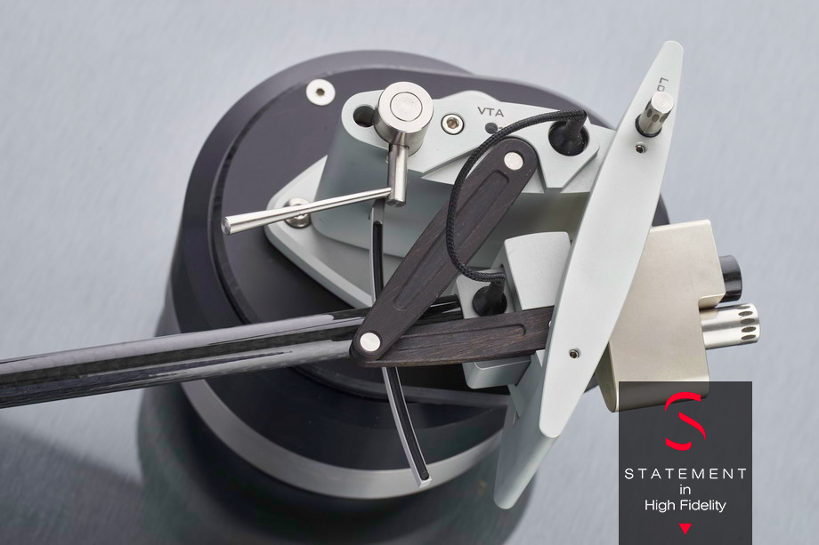 Regulację wysokości ramienia, jego blokowanie oraz wysokość podnoszenia ramienia można z łatwością wykonać tym samym śrubokrętem. Przeciwwaga, która odpowiada również za regulację siły nacisku, jest płynnie ustawiana na miejscu za pomocą śruby. Obsługa i wykonanie TA01 są doskonałe – z wyjątkiem ograniczenia w regulacji azymutu, o którym mówiłem. Do wyrównania overhangu dołączone jest aluminiowe kolanko z regulowaną końcówką. Miejsce zgięcia trzyma się na główce, a wkładkę przesuwa się w podłużnych otworach, aż igła dotknie czubka: jest to innowacyjne, niezwykłe i jednocześnie niezwykle proste rozwiązanie, już po trzeciej wymianie wkładki… ▌ ODSŁUCH ⸜ System odsłuchowy Gramofon: Brinkmann LaGrange z lampowym zasilaczem PIERWSZĄ WKŁADKĄ, KTÓRĄ ZAINSTALOWAŁEM na ramieniu, które wtedy jeszcze nazywało się „Vero”, była The Pickup firmy Einstein, która dobrze radzi sobie z ramionami o średniej i dużej wadze. Podobnie było z TA01: zademonstrowało ono szczególne umiejętności w zakresie dynamiki i obrazowania przestrzennego, rozpieszczając słuchacza bogatymi barwami i choć kable ramienia nie zostały wówczas jeszcze wygrzane, było ono w stanie oddać długie wybrzmiewania dźwięków. Równie przekonujące było oddanie szczegółów. Już przy tym pierwszym odsłuchu słychać było, że Thiele TA01 zalicza się do grona topowych ramion. Ale radość nie trwała długo: musiało ono wrócić do producenta, aby ten mógł zamontować hebanową płytkę z poprawną, obecną nazwą. Kiedy ramię do mnie wróciło zainstalowałem w nim wkładkę Lyra Etna, która oprócz bardzo dobrych osiągów jest szczególnie inspirująca ze względu na entuzjastyczne podejście do materiału muzycznego. Nie inaczej było z Thiele TA01. Podczas testowania subwooferów Velodyne Digital Drive Plus 10 mój system udowodnił nie tylko swój ogromny potencjał w zakresie niskich częstotliwości, na przykład ze Sky Blue PETERA GABRIELA – utworem testowym zaproponowanym przez Maxa Merka z Audio-Reference, który przywiózł subwoofery do Gröbenzell – ale także jego odporność na masywne fale dźwiękowe o niskiej częstotliwości, generowane w moim pokoju odsłuchowym. A to dlatego, że w TA01 nie ma niczego, co by miało zbyt duży luz lub mogłoby zostać wprawione w drgania. W swojej, prawdopodobnie najbardziej złożonej, jak dotąd, konstrukcji, Helmutowi Thiele znakomicie udało się poddać kontroli i rozpraszać rezonanse. Po doświadczeniu z elektronicznymi niskimi tonami w Sky Blue, Max Merk i ja zafundowaliśmy sobie Drone JONASA HELLBORGA i It's The Pits, Slight Return z albumu ELEGANT PUNK – utwory z podobnym „spacerem” po niskich częstotliwościach, z tym że akustycznie. Nie pamiętam, żeby ten ostatni utwór kiedykolwiek wcześniej brzmiał w tak przejrzysty i pełen niuansów, a jednocześnie tak fascynujący sposób. Ostatnio do testów przyszło wiele produktów, które nie zostały wcześniej wygrzane. Sensowne więc było, aby wkładka, przedwzmacniacz gramofonowy i głośniki (a także kable) „nabijały” na swoim liczniku godziny pracy właśnie w połączeniu z okablowaniem TA01. Oprócz płyt testowych posłuchałem więc, wydawałoby się, zapomnianych płyt. Podczas wygrzewania kolumn Børresen 01 Silver Supreme i kabli Ansuz Speakz D2 (więcej TUTAJ), zachwycił mnie utwór z albumu Dawn Dance STEVE’a ELIOVSENA i COLLINA WALCOTTA, szczególnie ze względu na barwne wysokie tony, a także jeśli chodzi o zróżnicowanie trzech, nagranych wielościeżkowo, gitar. Urzekła mnie również płyta PAULA MOTIANA pt. Le Voyage, przede wszystkim niezwykle finezyjnym oddaniem, czasem delikatnych, czasem energetycznych, dźwięków talerzy. Saksofon sopranowy Charlesa Brackeena, który przy innych zestawieniach ramienia i wkładki może być nieco agresywny, miał wystarczającą moc, ale nigdy nie popadał w nerwowość. I to pomimo że Lyra Etna nie jest najbardziej powściągliwie brzmiącą wkładką na rynku. Już wcześniej przypisywałem wiele zasług specjalnym zdolnościom zestawu Lyra + TA01 w zakresie basu, ale być może powinienem przestać koncentrować się na detalach: ten duet zagrał w prawdziwej harmonii. Co za wspaniałe, holistyczne przeżycie muzyczne! Przymierzając się do testowania wkładki Soundsmith Strain Gauge w połączeniu z dwoma subwooferami SBooster (więcej TUTAJ), zainstalowałem ten, wyjątkowy pod względem sposobu działania, system na ramieniu Thiele TA01 a nie na krótkiej wersji ramienia Einstein The Tonearm, z którego na co dzień korzystam. Soundsmith potrzebuje stabilnego ramienia o dużej masie.