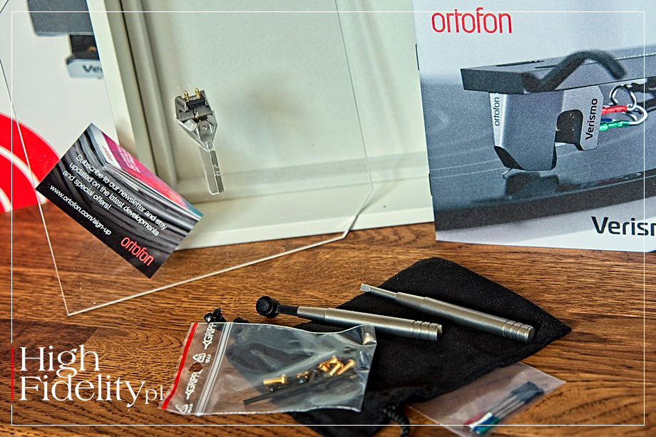 Przyjrzyjmy się samej wkładce. Pierwszy zaskakujący element to ogromne i bardzo ciężkie (jak na wkładkę) opakowanie. Oprócz niej, instrukcji w postaci sporej książeczki, dostajemy także komplet śrubek, oraz elegancki śrubokręt i pędzelek do czyszczenia igły (oba z metalowymi trzonkami). Zaskakująca jest również przykręcona do plastikowej płytki wkładka, a to za sprawą wielce oryginalnego kształtu jej body. Niełatwo jest go nawet opisać – to z grubsza litera n, z tym że jedna „nóżka”, ta z pinami jest krótsza i chudsza niż druga, w której zamontowano igłę/wspornik oraz napęd wkładki. Jak podaje producent korpus wkładki MC Verismo wykonano z tytanu w technice, której pionierem jest firma Ortofon, nazwanej SELECTIVE LASER MELTING (SLM). Technika ta pozwala na precyzyjną kontrolę gęstości materiału z którego zbudowany jest korpus, gwarantując tym samym – jak czytamy – ekstremalnie wysokie tłumienie wewnętrzne. Obudowa powstaje warstwowo ze spiekanego sproszkowanego metalu nanoszonego cienkimi warstwami, jedna po drugiej. MC Verismo wykorzystuje igłę Ortofon Replicant 100. Jest to igła ze szlifem typu Line Contact, która wyróżnia się wąską i długą powierzchnią styku, przez co jest bardzo zbliżona do kształtu rysika wycinającego rowek w matrycy. Ma to, zdaniem producenta, zapewniać „superprecyzyjny odczyt sygnału zapisanego w rowku płyty winylowej”, wyjątkowo niski poziom zniekształceń oraz „rozszerzony zakres reprodukowanych częstotliwości”. Wspornik Verismo wykonano z diamentu, który ze względu na swoją twardość i krystaliczną strukturę zapewnia, według producenta, optymalne połączenie igły z armaturą wkładki. Napęd oparto o silne, ale relatywnie lekkie magnesy neodymowe, natomiast cewki wykonano z opracowanego przez Ortofona materiału o nazwie AUCURUM, w którym wykorzystano pozłacaną beztlenową miedź 6NX. Armaturę wykonano ze specjalnego stopu o niższej magnetyczności niż zwykle stosowane w tym miejscu żelazo. Wewnątrz układu magnetycznego konstruktorzy użyli opracowane przez Ortofona rozwiązanie o nazwie FIELD STABILIZING ELEMENT (FSE). Element stabilizujący pole (FSE) to mały cylinder z materiału przewodzącego, strategicznie umieszczony wewnątrz systemu magnesów, który gwarantuje, że pole magnetyczne pozostaje stabilne niezależnie od ruchu armatury. Jeszcze jednym specjalnym rozwiązaniem zastosowanym we wkładce MC Verismo, jak twierdzi producent, jeden z ważniejszych, to opatentowany przez Ortofona WIDE RANGE DAMPING SYSTEM (WRD), czyli szerokopasmowy system tłumienia (wibracji). W tym systemie pomiędzy dwoma gumowymi elementami tłumiącymi, z których każdy ma inną charakterystykę, umieszczono maleńki platynowy krążek. System zawieszenia testowanej wkładki wykorzystuje również nowo opracowaną mieszankę gumową, zaprojektowaną tak, aby jeszcze bardziej wzmocnić efektu tłumienia. Jak podaje producent, dzięki zoptymalizowanej wadze i umiarkowanej podatności MC Verismo może być stosowana z większością współczesnych ramion gramofonowych. Dostarczany przez nią dość niski sygnał – 0,2 mV – wymaga przedwzmacniacza gramofonowego z dość wysokim wzmocnieniem. Optymalna siła nacisku igły wynosi (aż) 2,6 g, a sugerowana impedancja to 10 Ω. ▌ ODSŁUCH ⸤ JAK SŁUCHALIŚMY Ustawianie Verismo okazało się mocno wymagające. Jasne, że każdej wkładce należy poświęcić sporo czasu, jest to w końcu warunkiem koniecznym uzyskania optymalnego brzmienia. Jasne jest również, że tym droższym czasu poświęcam jeszcze więcej – z nich da się wycisnąć jeszcze więcej jakości niż z tych tańszych. W przypadku Ortofona zaczęło się od... śrubek mocujących w headshellu. Z uwagi na specyficzny kształt korpusu wkładki otwory (na szczęście gwintowane!) są zdecydowanie płytsze niż w większości znanych mi kartridżów. Stąd też zamiast używanych standardowo śrubek musiałem sięgnąć po parę dostarczoną wraz z Verismo, prawie o połowę krótszych.