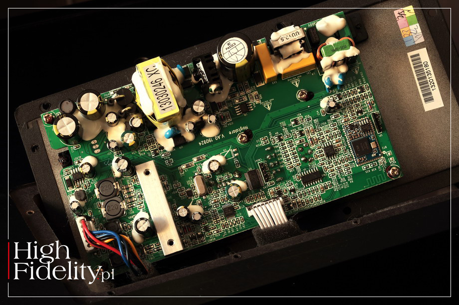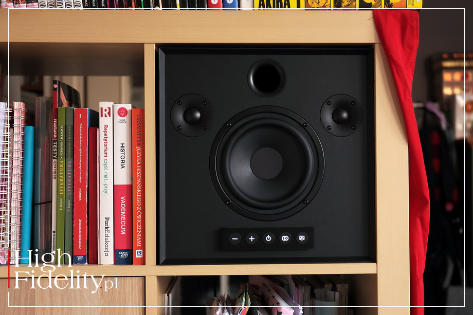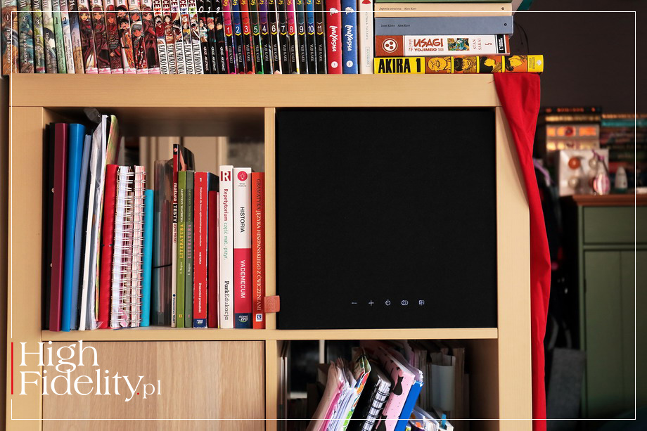 Głośnik nisko-średniotonowy obciążono obudową wykonaną z płyt MDF i wylotem bas-refleks, znajdującym się na przedniej ściance. Producent podaje pasmo przenoszenia 36-20 000 Hz, ale tę pierwszą wartość traktowałbym umownie. Obudowa jest wzmocniona wewnątrz ożebrowaniem, aby nie drgała, i wytłumiona w kilku miejscach sztuczną wełną. Zadbano także, aby nie drgały kable łączące głośniki i wzmacniacze, owijajac je materiałem przypominającym piankę. Głośniki napędzane są przez trzy (!) wzmacniacze, sterowane aktywną zwrotnicą. Producent mówi aż o 80 W ich sumarycznej mocy, co dla produktu tej klasy jest mocą więcej niż wystarczającą. Wydaje się, że Högtalare nagłośni całkiem duże pomieszczenie do sporych poziomów, a w systemie stereofonicznym będzie jeszcze lepiej. Sygnał Bluetooth odbierany jest przez mały moduł CSR A64215 – CSR jest specjalistą w dziedzinie łączności Bluetooth, kupionym w 2015 roku przez Qualcomm za słuszną sumę 2,4 miliarda (!) USD. Jeśli prześlemy sygnał analogowo, przez wejście mini-jack, zostanie on zamieniony na cyfrowy w układzie ADC Burr-Brown PCM1808 (24/96) i w takiej formie dalej, do aktywnej, cyfrowej zwrotnicy i wzmacniaczy. A te są wzmacniaczami cyfrowymi, zasilanymi przez pojedynczy zasilacz impulsowy. Całość mieści się na niewielkiej płytce drukowanej. Kolumna wykonana jest estetycznie, choć zapewne i tak będziemy widzieli tylko jej maskownicę – przypomina ona, tak naprawdę, głośnik instalacyjny, przeznaczony do zamontowania w ścianie. Ale, jak mówię, drobne detale, takie jak wspomniana „metka”, materiał maskownicy, prześwitujące przez nią wskaźniki, proporcje, wszystko to składa się na prosty, ale bardzo estetyczny produkt. ▌ ODSŁUCH ⸤ JAK SŁUCHALIŚMY Głośnik HÖGTALARE ma swoje przeznaczenie – montaż w półce IKEA Kallax/Expedit. Przesłuchałem go więc w takiej lokalizacji. Na zdjęciach firmowych pokazywany jest jednak również „solo”, na zwykłych półkach – i w taki sposób słuchany był najdłużej, stojąc na górnej półce stolika Finite Elemente Master Reference Pagode Edition MkII; postawiłem go na czterech podkładkach Acoustic Revive RKI-5005. Do zasilania użyłem kabla Harmonix X-DC350M2R Improved-Version z przejściówka na wtyk „ósemka”. Warto od razu z głośnikiem kupić jakiś fajny, nie musi być drogi, kabel od specjalisty. Płyty użyte w teście | wybór