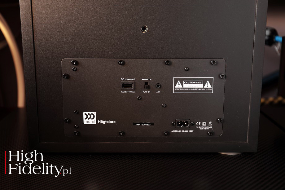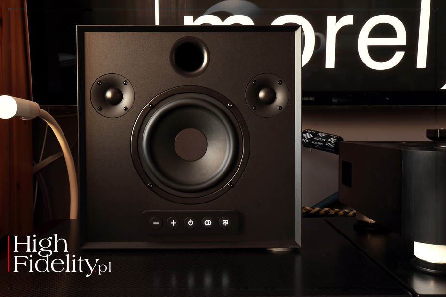 I jest jeszcze jedna, bardzo fajna funkcja, która pozwala na używanie DWÓCH głośników Högtalare w systemie stereo. Urządzenia wyposażone są w TWS (True Wireless System), który automatycznie łączy je w pary. I właśnie do tej funkcji odnosi się pełna nazwa, którą znajdziemy na pudełku: „Wireless Stereo Speaker”; pojedynczy Högtalare jest głośnikiem MONOFONICZNYM. ˻ TECHNIKA ˺ Technicznie to zaawansowana konstrukcja, mająca więcej wspólnego z klasycznymi, aktywnymi kolumnami niż z tzw. „głośnikami Bluetooth”. Jak mówiliśmy na początku, Morel produkuje nie tylko kolumny, ale i przetworniki do nich. W ostatnich latach doszły do tego również wzmacniacze – wszystko to znajdziemy w testowanym głośniku. Kolumna jest dość spora, można więc było zastosować duże przetworniki. Niskie i średnie tony odtwarza głośnik o średnicy ø 150 mm z papierową membraną, wytłaczanym koszem i sporym magnesem. Wysokie tony z kolei to domena aż dwóch, 25 mm głośników kopułkowych z tekstylną membraną, przed którą zamontowano krótki falowód; falowód ma pomóc zintegrować przetworniki i wyrównać ich odpowiedź poza osią.