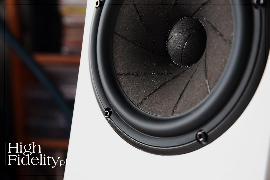 Premiera tego modelu miała miejsce 26 czerwca 2021 roku w salonie Q21. Są to dwudrożne kolumny podstawkowe z obudową typu bas-refleks. Ich kształt, podobnie zresztą, jak kształt pozostałych dwóch kolumn z tej serii, jest niecodzienny o tyle, że przednia ścianka nie jest prostym płatem materiału. Widać, że producent postanowił wykorzystać swój nowoczesny, świetnie wyposażony zakład produkcyjny i przygotował bryłę kosztowną w przygotowaniu, dlatego rzadko spotykaną. Przednia ścianka jest bowiem wygięta, podobnie zresztą, jak tylna. Ma to na celu likwidację fal stojących wewnątrz obudowy, pomaga wyrównać czasowo głośniki, ale przede wszystkim jest zabiegiem plastycznym. Przypomnijmy, że podobny zabieg w swoich konstrukcjach zastosowała firma FOCAL w serii Kanta. Obudowa może mieć dowolny kolor wybrany z palety REL, choć standardowo są to kolory czarny lub biały, w wysokim połysku lub w macie. Pylon jest jedną z nielicznych firm projektujących i produkujących własne przetworniki. Mateusz przywożąc do mnie kolumny o których mówimy, przywiózł również dwa nowe głośniki, które będą stosowane w nowej, high-endowej serii. Wyglądają po prostu niebywale! Napęd z wieloma małymi magnesami neodymowymi, przywodzący na myśl rozwiązanie Flower Power firmy Focal, także w głośniku wysokotonowym, warstwowe membrany celulozowe głośników średnio- i niskotonowych, to tylko dwa najważniejsze, widoczne na pierwszy rzut oka, rozwiązania. Ale do rzeczy – w większości serii Pylon stosuje własne głośniki, ale nie w serii Jasper. Kiedy była ona projektowana Pylon nie miał jeszcze swoich przetworników tej klasy, dlatego sięgnął po sprawdzoną klasykę, głośniki Scan-Speak. Wysokie tony obsługuje kopułka D2608/913000, a średnie i niskie 180 mm przetwornik 18W/4531G01 z serii Revelator, z charakterystyczną, ciętą i klejoną membraną z celulozy. Zabieg ten, mowa o cięciu, ma na celu redukcję zniekształceń i tzw. „modów” membrany, co – jak pisze producent – „zaowocowało niespotykaną kontrolą i sprężystością basu oraz ekspresyjnością i namacalnością wokali”. Membrana przetwornika wysokotonowego jest jednym z najlżejszych stosowanych w takich aplikacjach układów drgających – kopułka waży tylko 0,18 g, dzięki czemu – ponownie sięgam po materiały firmowe – „z łatwością odtwarza wszelkie najdrobniejsze niuanse i detale nagrań”. Na tylnej ściance zobaczymy bardzo solidne, podwójne zaciski z naprawdę dobrymi zworami. Montowane są one na płytce znamionowej wykonanej z jakiegoś rodzaju plastiku, naklejonej na płytę MDF. Od tylnej strony, na tej właśnie płycie, zamontowano zwrotnicę. Jest ona bardzo ładna, prosta i lutowana jest w technice punkt-punkt, bez pośrednictwa płytki drukowanej. Znajdziemy w niej kondensator polipropylenowy Jansena i cewkę powietrzną w torze wysokotonwym i dwie cewki rdzeniowe w nisko-średniotonowym. Aby pomóc w transferze sygnału, miedziana plecionka jest lutowana do przetworników, a nie wpinana przez skuwki. Obudowa jest wzmocniona od wewnątrz poprzeczką. Co ciekawe, konstrukcja ta niemal w ogóle nie jest wytłumiana. Materiał tłumiący znalazł się tylko na samym dnie i nie zajmuje on zbyt wiele miejsca. Kolumny przychodzą z okrągłymi, montowanymi na magnesach maskownicami i dostajemy na nie aż pięć lat gwarancji: standardowe dwa lata plus trzy dodatkowe, po zarejestrowaniu produktu. Kolumny dedykowane są do pomieszczeń o powierzchni 15-32 m2.