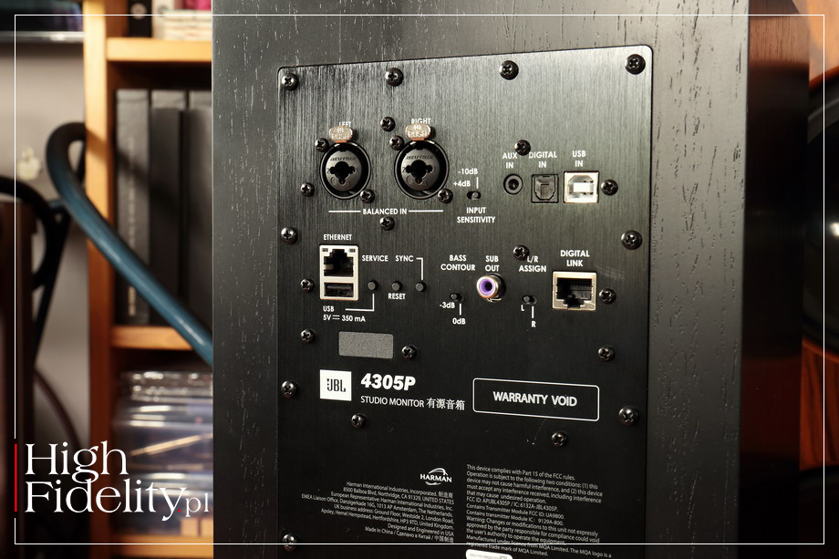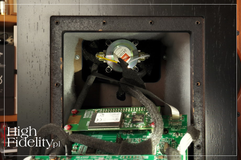 W tych dwóch zdaniach zawarto wszystko, czym nowy produkt firmy JBL jest i czym firma chciałaby, aby był. Po kolei: najważniejsza informacja jest taka, że 4305P to kolumny aktywne. Jak informuje producent, to pierwszy aktywny system głośnikowy tej firmy w serii Studio Monitor. Co więcej, to jej pierwsze kolumny wyposażone w odtwarzacz plików audio, o którym firma mówi „integrated streaming engine”. Z kolei wejścia XLR oraz TRS o przełączanej czułości pozwalają zastosować kolumny jako monitory bliskiego pola w studiu nagraniowym. ▌ 4305P Studio Monitor 4305P JEST WYNIKIEM SIĘGNIĘCIA PRZEZ ich konstruktorów do kilku oddziałów jej imperium. Podstawą były pasywne kolumny 4309 (test TUTAJ), które zasilane są przez wzmacniacze z cyfrową zwrotnicą, które można znaleźć w rozwiązaniach samochodowych tej firmy. A wisienką na torcie jest moduł odtwarzacza plików pierwotne opracowany przez firmę Arcam. To dwie kolumny, w których pomieszczono aż cztery wzmacniacze i sporo różnych wejść; wszystkie gniazda i regulacje umieszczono w jednej z kolumn, która pracuje jako kolumna „master”. Z drugą łączy się ona bezprzewodowo, przez Wi-Fi, lub przewodowo, za pomocą kabla CAT6 (w zestawie). Przy łączu Wi-Fi sygnał ograniczony jest do 24/96, a z kablem do 24/192 (PCM). Kolumnami można sterować za pośrednictwem pilota zdalnego sterowania Bluetooth, aplikacji Arcam MusicLife lub przez Google Chromecast. Na przedniej ściance „mastera” jest pokrętło siły głosu, zmiany wejść oraz diody wskazujące, które wejście wybraliśmy. ⸜ FUNKCJONALNOŚĆ To jednak coś więcej niż klasyczne kolumny aktywne, ponieważ wyposażone są w moduł odtwarzacza plików Roon Ready. Jak się wdaje, firma sięgnęła po opracowanie przetestowane w dwóch jej wcześniejszych produktach – we wzmacniaczu zintegrowanym SA30, należącej do niej firmy Arcam (test TUTAJ), i JBL SA750. Sygnał do kolumn prześlemy również za pomocą Apple AirPlay 2 i Bluetooth. W odróżnieniu od przywołanych wzmacniaczy 4305P nie oferują systemu korekcji akustyki pomieszczenia. Dzięki modułowi odtwarzacza plików możemy bezpośrednio do kolumn streamować sygnał z sieci, na przykład z serwisów Spotify,Tidal czy Qobus; firma JBL swoim klientom oferuje 90-dniową, bezpłatną aktywację konta Qobuz z plikami hi-res. Moduł ten dekoduje również pliki MQA. Do kolumn możemy wysłać również sygnał cyfrowy, przez wejścia S/PDIF RCA oraz Toslink lub przez USB. Jest tam również gniazdo USB dla dysku twardego. System umożliwia bowiem odtwarzanie stratnych plików audio AAC, WMA, AIFF, MP3, MP4 i OGG, ale również bezstratnych, jak WAV, FLAC, ALAC oraz DSD (DoP). Co więcej, do dyspozycji dostajemy również stereofoniczne, podwójne wejście zbalansowane – to część skierowana przez producenta do odbiorców profesjonalnych; w studiach urządzenia łączy się kablami XLR. Przeznaczone do tego gniazda są podwójne – to tzw. gniazda „combo”; akceptują one zarówno wtyki XLR, jak i zbalansowane i niezbalansowane (wybieramy między nimi) „jacki” typu TRS 6,3 mm. Na tylnej ściance umieszczono kilka przełączników, które realnie pomagają w ustawieniu kolumn. Pierwszym wybieramy, która kolumna jest lewa, a która prawa. A to dlatego, że jedna z nich powinna się znaleźć blisko routera lub przełącznika LAN. Drugim możemy podbić niskie tony o 3 dB, co jest szczególnie pomocne, kiedy kolumny stoją daleko od ściany. I jest też przełącznik, którym ustalamy czułość wejść liniowych – albo -10 dB, albo +4 dB, co odpowiada ustawieniom „domowym” i profesjonalnym. ⸜ TECHNIKA Kolumny są niewielkie i z przodu wyglądają niemal identycznie, jak model 4309. Ta dwudrożna konstrukcja typu bas-refleks korzysta z 25 mm wysokotonowego głośnika kompresyjnego 2410H-2 z tubą HDI Horn (HDI = High-Definition Imaging). Przetwornik niskotonowy jest niewielki, bo ma średnicę ø 130 mm, ale ma za to duży skok membrany. Tę wykonano z papieru w kolorze czarnym, co jest odróżnia te kolumny innych modeli z serii, mających membrany w kolorze białym. Każdy głośnik otrzymał własny, pracujący w klasie D, zintegrowany z zasilaczem, wzmacniacz: te dla głośników wysokotonowych mają moc 25 W, a dla nisko-średniotonowych 150 W. System dysponuje więc mocą 300 W rms, co jest prawdziwą potęgą. Podział pasma między głośnikami, zazwyczaj powierzany zwrotnicom pasywnym, przeprowadzany jest tutaj cyfrowo, w układzie DSP. Pozwala to na lepszą integrację głośników, choć ma też swoje wady – jak zwykle zresztą w audio. Wybrano do tego celu układ Analog Devices ADAU1466 DSP SigmaDSP z 2017 roku, stosowany głównie w przemyśle samochodowym, w systemach nagłaśniających, I to, po Arcamie, kolejny trop mówiący o tym, jak inżynierowie Harmana zintegrowali z sobą różne techniki. Ponieważ pasmo dzielone jest cyfrowo i cyfrowo przesyłany jest sygnał między kolumnami, sygnał z wejść analogowych zamieniany jest na cyfrowy. Pracuje nad tym dwukanałowy układ ADC Analog Devices PCM1861. Ma on niezłą dynamikę – 110 dB – i na wyjściu dostajemy z niego sygnał 32 (lub 24) bity,192 kHz. Obudowę kolumn wykonano z płyty MDF oklejonej naturalnym fornirem. Może mieć on kolor czarny albo kolor orzecha amerykańskiego. Front lakierowany jest na niebiesko, a zakrywa go czarna, rozpięta na plastikowej ramie, siateczka; maskownicę można zdjąć. ▌ ODSŁUCH ⸤ JAK SŁUCHALIŚMY W przypadku bliźniaczego, ale pasywnego modelu 4306 producent zalecał rozstawienie kolumn JBL 4309 z serii „Studio Monitor” w odległości od 1,8 do 2,5 m od siebie i w odległości ponad 50 cm od ścian bocznych. W instrukcji, która przychodzi z wersją aktywną jest tylko jeden wymóg: aby słuchacz i kolumny tworzyły trójkąt równoboczny. W czasie testu kolumny stanęły więc nieco bliżej siebie, w odległości 2 m – tyle samo mi