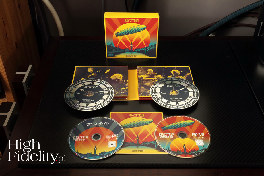 Zmiana o której mówię polega na zagęszczeniu dźwięku i jego skupieniu. Wszystkie kolumny tej firmy, jakie znam, a dotyczy to zarówno modeli „domowych”, jak i profesjonalnych, bazują na ponadprzeciętnej dynamice, mocy i „uderzeniu”. Głośniki tubowe oraz papierowe membrany przetworników nisko i nisko-średniotonowych mają takie właśnie cechy własne. Trudno się więc równać innym producentom z JBL-em i ścigać na czysty „fun”, jaki jej kolumny oferują. Przychodzi za to jednak zapłacić, głównie rozdzielczością i wyrównaniem pasma. Co w modelu 4305P zostało po części odwrócone – mamy tu i naprawdę płaskie pasmo przenoszenia, i bardzo ładne nasycenie dźwięku. Z kolei dynamika, w skali bezwzględnej, wydaje się uspokojona. To nie jest tak, że to mało dynamiczne kolumny, ostatecznie to wciąż JBL :) Bo przecież LORDE z płyty Solar Power, a potem ART BLAKEY z Moanin’ i JOHN COLTRANE z Giant Steps, w wersji wydanej na 60. rocznicę premiery tej płyty, wszystkie te nagrania brzmiały zawodowo. Kiedy jednak przypomnę sobie, jak te same utwory były grane przez inne kolumny Studio Monitor, muszę powtórzyć to samo: to znacznie spokojniejsze brzmienie. Co wcale nie jest złe. Bo nie jest to też dźwięk zmulony, absolutnie nie o to chodzi. JBL-e grają w mocny i otwarty sposób. Ale też słychać, że ta otwartość i ta moc są kontrolowane i powściągane. Kolumny brzmią dzięki temu w znacznie bardziej uporządkowany sposób. Są też głębsze barwowo. I nawet z mocno skompresowanym materiałem, jak z płyty DOJA CAT, który został „pokazany” przez serwis Spotify w liście najczęściej słuchanych w tym tygodniu na świecie, nie miałem problemu ani z rytmem, ani z barwą. | Nasze płyty ⸜ LED ZEPPELIN Celebration Day Swan Song/Atlantic/Warner Music 79688-1