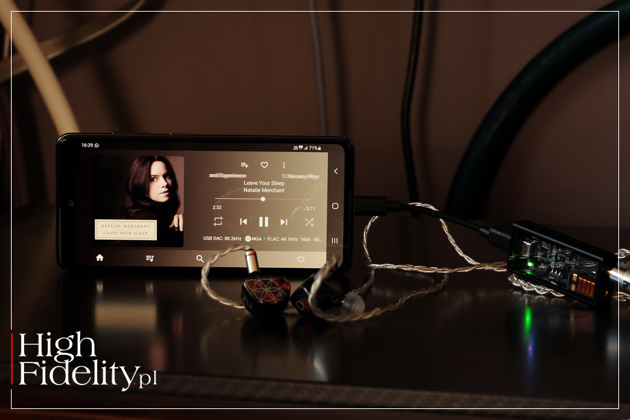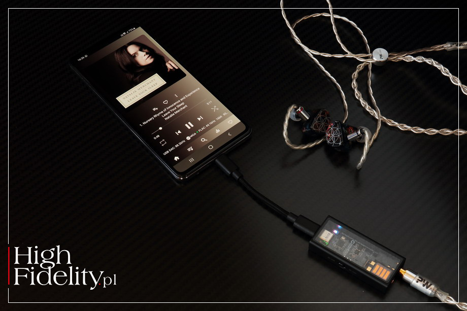Aby to się udało i abym nie miał poczucia „nieprzystawalności” tego doświadczenia do tego, z czym mam do czynienia w „dużym” systemie, muszą być spełnione pewne warunki. Można je wszystkie streścić w krótkim słowie: „wiarygodność”. Można ją osiągnąć w różny sposób, ważne będą również nasze osobiste potrzeby i wymagania, ale cel jest zawsze ten sam. W każdym razie, streaming za pomocą komórki może być niezwykle fajnym i satysfakcjonującym doświadczeniem. Trzeba do tego jednak takich narzędzi, jak M15. Porównywany do mojego przetwornika/wzmacniacza słuchawkowego AOL Audio Pilot, podał wszystko w znacznie bardziej rozdzielczy i klarowny sposób. Wokal NATALIE MERCHANT z jej płyty Leave Your Sleep pokazany został dokładniej, z większą ilością szczegółów. Podobnie zresztą, jak towarzyszące jej w The Peppery Man potężne, niskie głosy męskie. Questyle bardzo dobrze konstruuje również stereofonię. Na słuchawkach to zawsze problem i poza nagraniami binauralnymi trudno mówić o realnej przestrzeni. Mimo to instynktownie czujemy, że coś jest pokazane w bardziej wiarygodny sposób w przestrzeni, a coś mniej. M15 robi to znakomicie, ponieważ oferuje wysokiej klasy selektywność i bardzo dobrą rozdzielczość. Obydwa te elementy stawiają go znacznie wyżej w hierarchii niż DAC AOL. Dochodzi do tego również wysokiej próby dynamika. W małych, przenośnych przetwornikach D/A ze wzmacniaczem słuchawkowym to problem. Korzystają one z maleńkich kości o celowo zminimalizowanym poborze prądu. A niskie napięcie zasilania oraz niski prąd maksymalny oznaczają zmniejszenie dynamiki. Nie jest przypadkiem, że najbardziej dynamiczne wydają się urządzenia lampowe, zasilane napięciem o wartości kilkuset woltów. Fizyki nie przeskoczymy. W jej ramach i ograniczeniach testowany DAC pokazuje się jednak z bardzo dobrej strony, To naprawdę dynamiczne, naprawdę mocne granie. Kiedy słuchamy fortepianu ÓLAFURA ARNALDSA z płyty A Sunrise Session, to nawet po dołączeniu do fortepianu dużej orkiestry nie mamy wrażenia zgaszenia dźwięku. Testowany DAC znakomicie separuje barwowo te dwa plany, to jest zespół z fortepianem, syntezatorem i perkusją od orkiestry. Przechodząc z jednego DAC-a na drugi nietrudno jednak dostrzec, że wraz z poprawą klarowności dźwięku M15 nasza uwaga przenosi się w górę pasma. Słychać to szczególnie dobrze z nagraniami o dość mocno skompresowanym dźwięku, na przykład z krążkiem SOUNDGARDEN pt. Superunknown. Przetwornik AOL pokazywał mocniejszy bas i lekko zaokrąglił wysokie tony. Z kolei M15 odtworzył blachy perkusji w dźwięczny i mocny sposób, nie zamknął ich, a bas był u niego krótszy i lepiej kontrolowany. Te dwa elementy zestawione razem powodują, że przekaz ma mniej nasycony środek pasma. To ani dobrze, ani źle – po prostu tak jest i należy pod tym kątem myśleć o słuchawkach dla M15. W tym przypadku stawiałbym raczej na konstrukcje o ciepłym dźwięku, jak idące w kierunku kremowego brzmienia FOCAL SPHEAR i CROSSZONE CZ-8A, a nie charakteryzujące się monitorowym przekazem Lime Ears PNEUMA. Ale nie jest tak, że z precyzyjnymi konstrukcjami DAC Questyle zagra źle, absolutnie nie o to chodzi. Bo przecież, słuchany zaraz potem z płyty Doom Crew Inc. zespół BLACK LABEL SOCIETY pokazał wszystko, co w tym urządzeniu najlepsze. Miałem mocne, dynamiczne, otwarte granie, jak na koncercie, z dobrze zarysowanymi krawędziami źródeł dźwięku. Powiem więcej – jestem pewien, że wielu ludziom właśnie TAKIE brzmienie przypadnie do gustu.