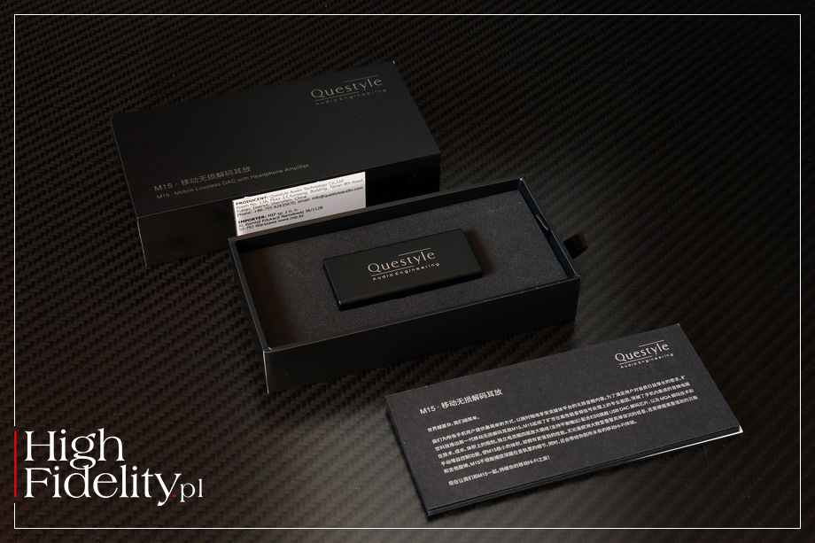Tym bardziej, że z materiałem o lepiej poustawianym balansie tonalnym, niech to będzie świetna elektronika z albumu Changed for the Better zespołu WEVAL otrzymałem świetną przestrzeń, niski, głęboki bas i całkiem ładnie wypełniony środek pasma. Wyższa góra była mocna i wyraźna, ale to, czy było jej ciut za dużo, czy w sam raz, to już kwestia gustu. Ważne, że wszystko w tym przekazie „gra”, wszystko jest poukładane i wysokiej klasy. ▌ PODSUMOWANIE M15 FIRMY QUESTYLE gra w dynamiczny, otwarty sposób. Jego dźwięk jest klarowny i przejrzysty. Pokazuje niski ,bardzo dobrze kontrolowany bas i bardzo czyste wysokie tony. Jak na urządzenie przenośne są one czyste w sposób wyjątkowy. Jest to też dźwięk w którym nie ma mięsistego basu, ani też ciepłego środka pasma, to nie ten przypadek. Lepiej nagrane płyty zyskują na tym podwójnie, a gorzej – podwójnie tracą. Nawet jednak tak skompresowane granie, z podkreślonym wyższym środkiem, jak ze – skądinąd świetnego – singla NITA STRAUSS Dead Inside (z Davidem Draimanem z zespołu Disturbed) pokazane zostanie naprawdę dobrze. Najbardziej na podłączeniu M15 do dobrego źródła dźwięku zyskają jednak nagrania jazzowe i muzyki klasycznej. To tam wysoka dynamika i rozdzielczość chińskiego DAC-a ujawnią się z podwójną mocą. Naprawdę fajna rzecz. ■ ▌ Dane techniczne (wg producenta)