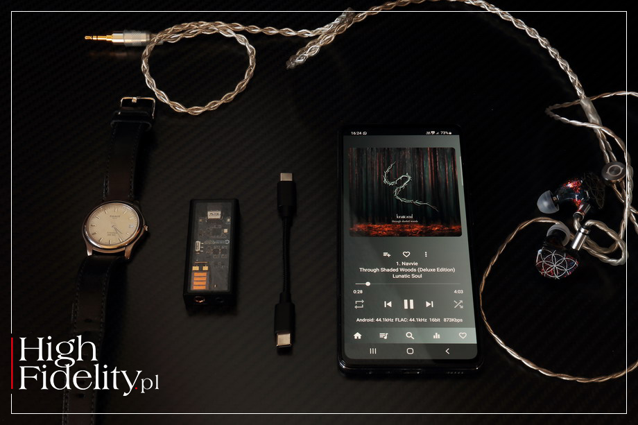 Firma Questyle zwraca uwagę na to, że w testowanym DAC-u zaimplementowała system zarządzania energią firmy TOREX Semiconductor. Wedle jej deklaracji jest to układ o wysokiej efektywności, który precyzyjnie kontroluje zużycie energii, zmniejszając tym samym pobór energii z urządzenia źródłowego oraz zapobiegając przegrzewaniu się DAC-a/AMP-a. M15 współpracuje nie tylko ze słuchawkami, bo można do niego podłączyć interkonekt i wysłać sygnał do wzmacniacza audio. Firma do tego celu przygotowała specjalne kable Mogami NEGLEX (3,5 mm → 2 x RCA lub 4,4 mm → 2 x 3-pin XLR), które można dokupić osobno. Są to interkonekty wykonane z miedzi beztlenowej, z pozłacanymi wtykami Neutrika oraz ręcznie nakładanym nylonowym oplotem. M15 jest świetnie wykonanym, ciekawym technicznie urządzeniem o sporej funkcjonalności. Pomyślałbym jedynie nad lepszym kablem połączeniowym i ewentualnie o ładnym futerale – aż szkoda by było zarysować tak ładne urządzenie. Dodam, że przetwornik jest bardzo ładnie zapakowany. Może bez fajerwerków, ale w sposób, do którego lata temu przyzwyczaiła swoich klientów firma Apple. ▌ ODSŁUCH ⸤ JAK SŁUCHALIŚMY Podczas testu M15 głównym źródłem sygnału był dla mnie smartfon Samsung A52. Słuchałem za jego pomocą muzyki z serwisu Tidal Master (FLAC i MQA) oraz słuchowisk z serwisu Audioteka (MP3), przede wszystkim pisząc testy na laptopie. Na smartfonie zainstalowałem program USB AUDIO PRO, który pozwala wysyłać na zewnątrz sygnał cyfrowy w jego natywnej formie; w programie rozpakowywana jest też pierwsza część plików MQA (Core). M15 porównywany był do przetwornika/wzmacniacza słuchawkowego AOL AUDIO PILOT. |