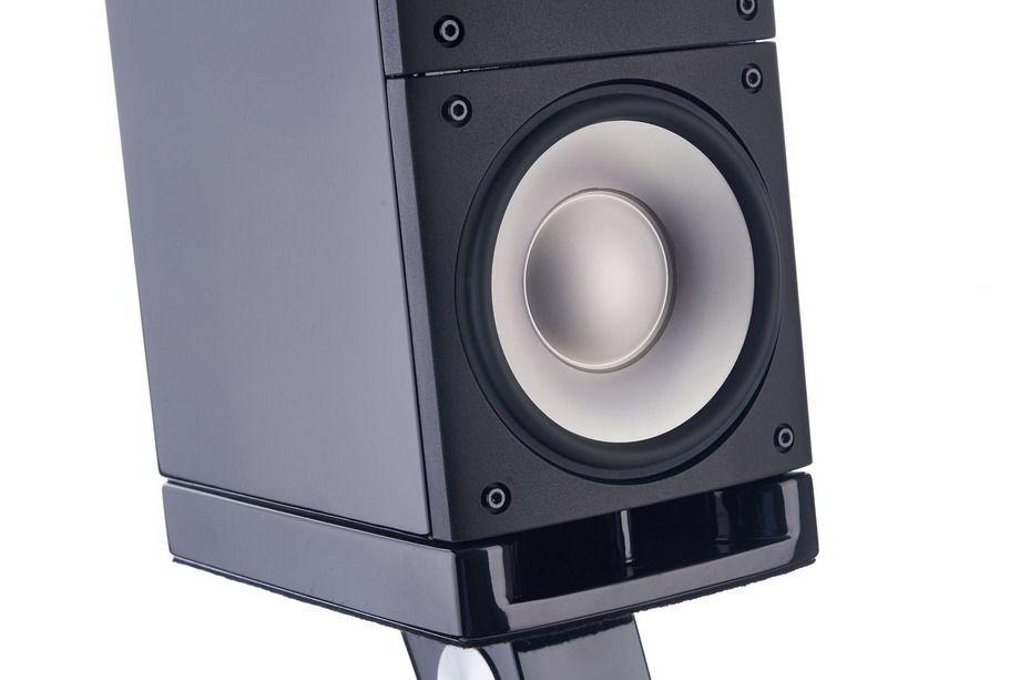 ⸜ X1t montuje się na dopasowanych do nich, zakrzywionych, eleganckich podstawach Kolejną ważną cechą X1t jest nowoopracowany, 133 mm (5,25”) przetwornik nisko-średniotonowy, którego membranę wykonano z aluminium. Raidho mówi, że jednym z wyzwań związanych z aluminium jako materiałem na membrany, jest to, że może on mieć „własny” dźwięk, którego należy unikać za wszelką cenę. Dlatego wszystkie membrany w jej kolumnach pokryte są z obu stron cienką warstwą ceramiczną. Powłoka ta nanoszona jest w procesie plazmowym, który wiąże powłokę ceramiczną z aluminium. W X1t do tego sandwicza dodano kolejną warstwę – tantalu, dlatego w nazwie nowego modelu dodano literkę „t”. Tantal imponuje szczególnie wysoką odpornością na ciepło i zużycie. Materiały firmowe mówią, że membrana jest dzięki temu jeszcze sztywniejsza i twardsza, niż byłoby to możliwe w przypadku połączenia tylko powłok aluminiowej i ceramicznej – i to bez szkodliwego wzrostu masy. W przetworniku zastosowano potężne magnesy neodymowe o zoptymalizowanym polu magnetycznym, zapewniające wysoką dynamikę i niskie zniekształcenia. Głośnik nisko-średniotonowy pracuje w obudowie bas-refleks, ze zoptymalizowanym pod kątem przepływu powietrza wylotem, który producent umieścił przy dolnej krawędzi na przedniej ściance. Jego charakterystyczny otwór jest detalem w projekcie X1t, który zwraca na siebie uwagę, ale ma on również konkretne zalety, jeśli chodzi, na przykład, o umieszczenie głośnika blisko tylnej ściany.