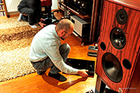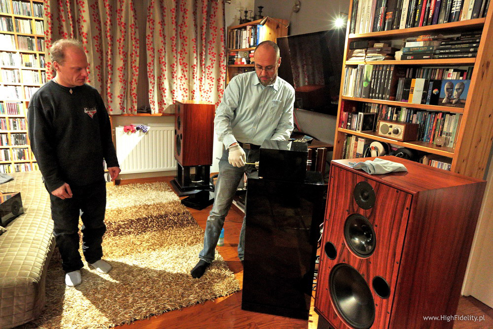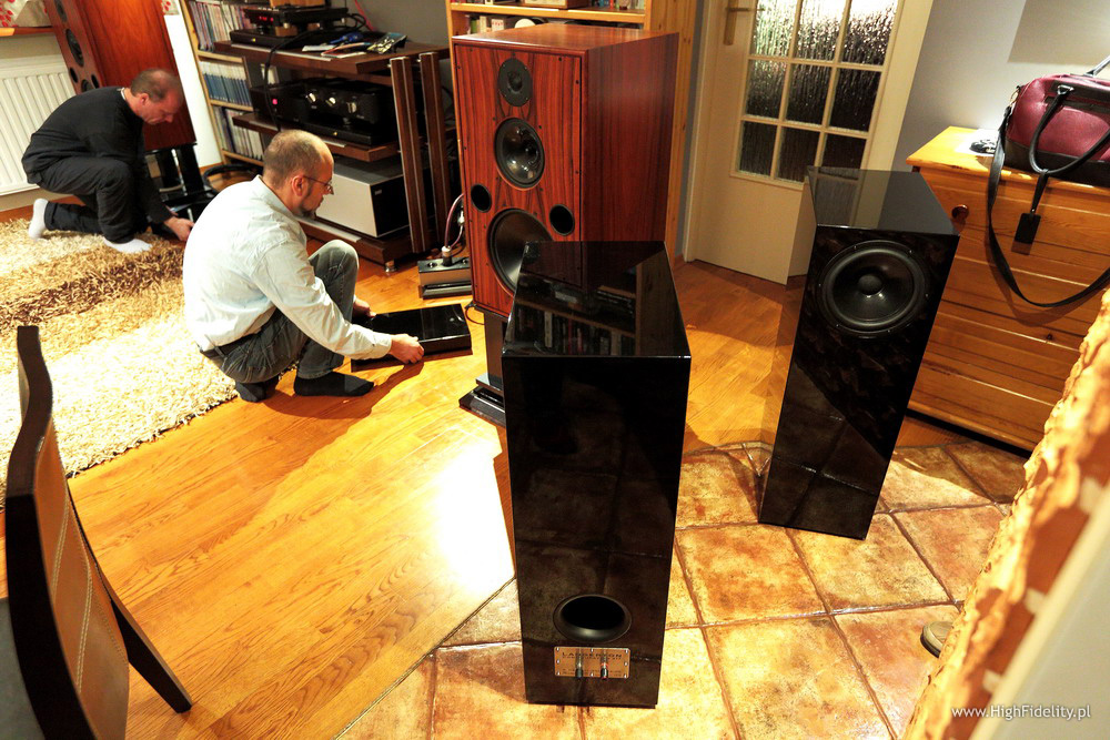 How can you not talk about speakers’ “personality”? Of course, we can naively believe that there exist speakers – electronics, too, but this time it’s not about the latter – with perfectly flat and neutral tonal response. If that were true, they would faithfully reproduce exactly what they receive from the amplifier output. As newcomers to the audio world we may even believe in this Holy Grail, and it works to our benefit. Unable to find it, we look deeper and deeper, getting to know various designs and becoming familiar with the design philosophies of particular manufacturers. Sooner or later, there must come a kind of “awakening” with the resulting understanding that there is no such thing as a “neutral” speaker. There are only various speakers that embody these or other design assumptions. And the latter are the result of a certain vision of sound and of the compromises in its implementation. Each speaker simply has its own “inherent” sound, intended by its designer. | Listening to 99, especially the short interludes where the surround effect was used to the fullest, I was trying to figure out what type of space it was and how it was presented by the German speakers. They did it unlike almost any other pair of speakers I’d ever had at home. I don’t think I need to mention that they are extremely spacious as that’s rather easy to guess. Yet they don’t sound the same with anything they play. While each album, even in mono, received its own proper setting in the form of individual, clear acoustics, its particular elements were presented differently from one album to another, and often from track to track. I didn’t even realize previously that some of these differences existed.   The dog on Waters’ album that barks from behind the window or the sound of sled running on the snow behind us – that’s normal. You can hear it even on a small portable stereo in the kitchen corner, as long as it has two speakers. Referring to it in the context of high-end in order to emphasize audio system spaciousness is downright offensive. It can only be a basis to build up something bigger. The Langerton speakers do it perfectly. Not only do they define phantom images on the sides and at the back, but they also combine them with what is happening in front of us. If the reverb on 99 runs from front to back, it is continuously audible, without jumping between these two points. When the infamous dog barks, it doesn’t happen for its own sake but in a certain space in which we are also located. There is a connection between HERE and THERE; both have the same exact set of distinctive sounds, reflections and reverberation. However, to reduce these speakers’ advantages only to great imaging would be most unfair. I think that their ability to show the space so precisely and naturally, and so well differentiated has some other origin: a very flat and even frequency response. These are really neutral speakers. Perhaps this is the reason for such a tight and dense connection between the front and back and the sides. Creating spectacular space is often done at the cost of thinning down the lower registers and emphasizing a few frequency ranges. I didn’t notice any of that here. Even though, at first, the listener unprepared for such a presentation may find the bass slightly lacking. And this is another aspect that makes these speakers different from the majority of other designs I've ever heard. The tonality of these speakers seems to be, or should I rather say it simply is brighter than that of the Harbeth M40.1. It generally resembles the JBLs mentioned earlier, which also have a better constructed treble, with higher definition. The frequency response of the 217 is flatter, however, with no unevenness that is always present in horn designs. Yet it is not a "bright" sound. I have mentioned the strong bass earlier on. The midrange also sounds saturated and very stable. It is helped by the method of driver mounting and the selected crossover network. But the main thing is that the speakers differentiate very well and hence the vocals will not always be strong and saturated, nor will be located in front of us on each album. When the recording was made in a large space, such as church – Antonio Caldara’s Maddalena ai piedi di Cristo, for example – the vocals are recessed deep into the soundstage. When it is a mono recording made with a close up microphone, right before the singer, his vocals will be in front, just before us. However, since we are used to the fact that the sound at home is to a large extent “made” or recreated, it puts us slightly off our stride. Due to the physical constraints of audio playback on speakers in small spaces, sound and production engineers who monitor it in even smaller sound control rooms attempt to condense the sound to make it “fit” between the speakers, without reducing the volume of individual instruments. It's very difficult but feasible, as evidenced by the best examples. This is the path taken by speaker designers who "help" them create a large volume. An outstanding example of such thinking are the Harbeth M40.1. Conclusion “School of Sound” is a basic audio concept that is worth remembering. One can of course talk about good and bad products, but most of them are simply dull. However, if something is good, it will most likely be different from other good things. The Langerton Configuration 217 speakers are also different from most others, resembling – I couldn’t help saying that – the Ascendo speakers I once auditioned at home. I don’t know how it’s possible, but the 217 seem more refined to me. While the ribbon in the System ZF3 S.E. is far better than the 217’s tweeter, bass delivery and a total integration of everything into one smooth whole are better with the speakers Andreas and Walter lugged up to my third floor.    The 217 were set up and positioned by Andreas and Walter. They took the same exact spot