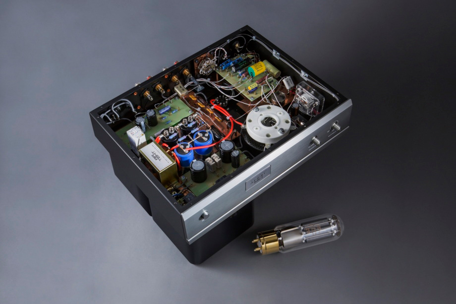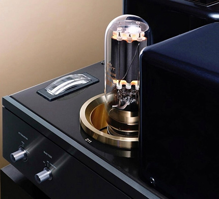 Taki wybór wynika z faktu, iż położyliśmy nacisk na bezpośredniość i energię dźwięku, a nie na poprawę charakterystyki. Punkt pracy każdej części obwodu został zaprojektowany bardziej rygorystycznie niż w ATM-211, który oferował moc 22 W, dzięki czemu moc ATM-2211 została znacząco zwiększona do 32 W, pomimo iż nadal używamy pojedynczej triody 211 w trybie single ended. Dla lampy mocy używamy stałego biasu, a żarnik zasilany jest prądem DC. ˻ 2 ˺ Wzmacniacz dysponuje dwoma transformatorami zasilającymi, osobno dla wysokich i niskich napięć. Tradycyjnie w takich wzmacniaczach stosowany był jeden transformator zasilający, ale tym razem wykorzystaliśmy dwa, jeden dla wysokiego i jeden dla niskiego napięcia, aby zniwelować zakłócenia między stopniami wzmacniacza i dostarczać moc do każdego z nich z odpowiednim zapasem. Ponadto, cewka dławika, którą można uznać za serce wzmacniacza, została specjalnie wykonana z wykorzystaniem uzwojenia międzywarstwowego, które nawijane jest nie na tradycyjnym karkasie, tylko na papierowych przekładkach i jest w stanie wytrzymać wysokie napięcie. Cewka dławika jest wykonywana ręcznie przez japońskich rzemieślników. Jako transformator wyjściowy wykorzystano wysokiej klasy produkt marki Hashimoto Denki, aby poprawić pasmo przenoszenia w zakresie niskich częstotliwości. Dwa transformatory mocy, cewki dławika i transformatory wyjściowe zostały wyprodukowane w Japonii. Co więcej, w celu ochrony lampy mocy i zapewnienia długowieczności kondensatora wygładzającego napięcie w zasilaczu, w momencie włączania zasilania następuje opóźnienie dostarczenia napięcia do lampy z pomocą przekaźnika czasowego. ˻ 3 ˺ Wskaźnik Ip (miernik biasu), który monitoruje bieżącą wartość prądu dla lampy wyjściowej otrzymał nową, pionową formę, która ułatwia jego odczytywanie i ustawianie właściwej wartości. Dzięki temu, że pokrętło (miernik) biasu jest kompatybilne zarówno ze standardową lampą 211/VT-4C o mocy 100 W, jak i z lampą 211 typu vintage o mocy 75 W, która jest również dostępna na rynku, możliwa jest łatwa wymiana lamp mocy.