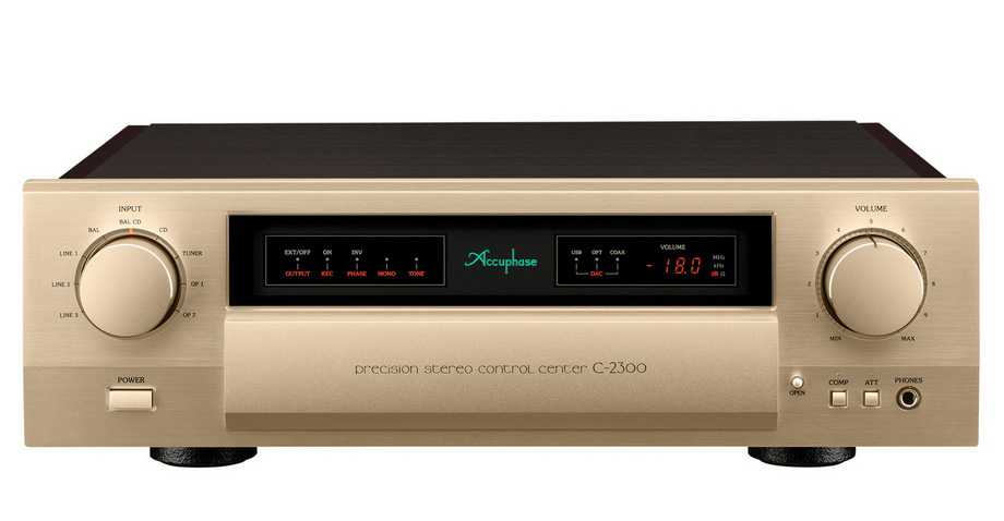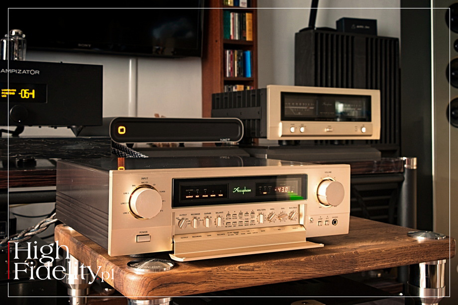 Gdy więc w zaproszeniu na „Audiofilskie zakończenie lata” w krakowskim Nautilusie pojawiła się informacja o jednoczesnej premierze przedwzmacniacza liniowego Accuphase C-2300 zdjęcie było właściwie zbędne – z góry wiedziałem, co zobaczę (więcej o spotkaniu → TUTAJ). Jako że miałem okazję wybrać się na wspomnianą imprezę jeszcze zanim urządzenie do mnie trafiło, na miejscu mogłem potwierdzić oczekiwania dotyczącego jego (pysznego!) wyglądu, a nawet posłuchać go w dopracowanym systemie. Ten ostatni służył nie tylko do odsłuchów nagrań, ale i nagłaśniał minikoncert Marka Bilińskiego. W obu przypadkach ze swojej roli wywiązał się doskonale i nawet maestro wyrażał się bardzo pozytywnie o zestawionym przez Nautilusa systemie. Ciekawostką, którą dystrybutor nie omieszkał się pochwalić, jest fakt, iż C-2300 zastępuje w ofercie dwa, doskonale znane modele: z jednej strony tańszy C-2150, a z drugiej droższy C-2450. Być może dlatego numeracja w symbolu nowego przedwzmacniacza znalazła się dokładnie pośrodku między dwoma wymienionymi. W audio rzadko się zdarza by jedno urządzenie zastępowało dwa inne, zwłaszcza jeśli to nowe jest tańsze od wyższego z zastępowanych modeli. Wydaje się to świadczyć o tym, że w zakresie klasy brzmienia nowemu urządzeniu powinien być co najmniej bardzo blisko C-2450. Inaczej nie byłoby powodu, by tego ostatniego eliminować z oferty. A ponieważ także najmniej kosztowna propozycja tego producenta, model C-2150, znika z oferty oddając swoje miejsce nowości, można przyjąć, że C-2300 wyznacza zupełnie nowy standard w ofercie Accuphase. ▌ C-2300 ZARÓWNO C-2150, JAK I C-2450 gościły u mnie w zestawach z końcówkami mocy Accuphase, acz w obu przypadkach działo się to już dobrych kilka lat temu. Stąd jasne było, iż porównanie ich brzmienia będzie dla mnie dość trudne. Trochę szkoda, bo niemal każda osoba w krakowskim Nautilusie, z szefem, Robertem Szklarzem włącznie, twierdziła, że nowa konstrukcja jest znakomita i że, o czym wspominałem wcześniej jako o wyniku logicznego rozumowania, faktycznie jest tak dobra, że decyzja o wycofaniu także wyższego modelu była po prostu logiczna. Zanim jednakże przeszedłem do oceny brzmienia, otworzyłem stronę polskiego dystrybutora i w zakładce przedwzmacniacze znalazłem zdjęcia tych trzech modeli umieszczone obok siebie. Możecie państwo w każdej chwili zrobić to samo i dokonać samodzielnej oceny. Podobnie jak ja, przekonacie się zapewne, że od frontu właściwie jedynym odróżniającym te trzy modele elementem jest... oznaczenie umieszczone na otwieranej klapce. Zanim o tym, co ukryto pod nią jeszcze dwa słowa o obudowie. Tę wykonano ze stalowych i aluminiowych warstw, a front to płat grubego aluminium anodowanego na kolor złoty („szampański”). Umieszczone na froncie gałki i przyciski także wykonano z aluminium i wykończono tym samym kolorem oraz z równie wielką starannością co cały front. Obok dwóch sporych pokręteł (głośność i selektor wejść) i kilku przycisków umieszczono tam wyjście słuchawkowe typu „duży Jack” (TRS 6,3 mm). Centralnie natomiast zainstalowano charakterystyczny wyświetlacz i to pod nim znajduje się, wspomniana, podłużna klapka. Przyglądając się z boku C-2300 łatwo jest zauważyć, iż jest mu nieco bliżej do tańszego modelu, niż do droższego, jako że tylko ten ostatni (pośród wymienianych trzech) wyposażono w ozdobne, przypominające drewno panele, których w dwóch tańszych modelach nie znajdziemy. Niemniej różnicę w porównaniu do urządzeń, które C-2300 zastępuje, widać najlepiej po otwarciu klapki na froncie. Ci, którzy z jakimkolwiek przedwzmacniaczem Accuphase’a mieli już do czynienia wiedzą doskonale, że to tam znajduje się zdecydowana większość manipulatorów umożliwiających korzystanie z licznych funkcji przedwzmacniacza. Dotyczy to również obsługi opcjonalnych modułów pasujących do szeregu modeli, które Accuphase oferuje za dodatkową opłatą i które łatwo można, nawet samodzielnie, w ich urządzeniach zamontować. Tył to również charakterystyczny dla Accuphase’a układ: pięć niezbalansowanych wejść (RCA), dwa zbalansowane (XLR), pętla do nagrywania (wejście i wyjście, oba RCA), trzy wyjścia liniowe (2 x RCA i 1 x XLR) oraz wejścia (1 x RCA i 1 x XLR) dla zewnętrznego przedwzmacniacza; zestaw złączy uzupełnia standardowe gniazdo zasilania IEC. Całość uzupełniają dwie „zatoki”, w których można zainstalować opcjonalne moduły. Wśród opcji są przedwzmacniacze gramofonowe MM/MC (AD-60) i przetworniki cyfrowo-analogowe (DAC-60). W środku znajdziemy oczywiście chlubę i dumę marki, czyli autorski układ regulacji poziomu głośności AAVA i to w postaci symetrycznej, czyli tzw. Balanced AAVA (Accuphase Analog Vari-gain Amplifier), zaczerpnięty z modelu C-2900. Zresztą wszystkie układy AAVA, włącznie z regulatorami barwy dźwięku, zrealizowano w postaci zbalansowanej, korzystając wyłącznie z elementów dyskretnych. Zastosowanie wersji Balanced AAVA, zgodnie z deklaracją producenta, zmniejsza szumy własne urządzenia o 10 % (w porównaniu do C-2450!). Przedwzmacniacz C-2300 wyposażono również w niezależne układy wzmacniające, osobne dla prawego i lewego kanału. Zostały one zrealizowane na osobnych płytkach, z dedykowanymi każdemu kanałowi modułami zasilania wyposażonymi w 2 x 2 kondensatory po 10 000 μF każdy. Zespół inżynierów Accuphase’a, podobnie jak we wszystkich najnowszych urządzeniach z najwyższej półki tej marki, skupił się w C-2300 na komfortowej, bezszelestnej pracy pokrętła głośności umocowanego na wałku sterującym o średnicy 8 mm i wyposażonego w mechanizm pływający ze specjalnie dobranym płynem smarnym. Faktycznie, muszę przyznać, że przy ręcznej obsłudze (którą preferuję) z pokrętła głośności ko