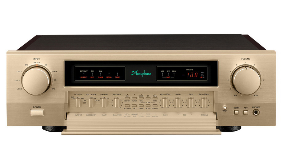 DY W NEWSACH POJAWIA SIĘ informacja o nowym modelu Accuphase’a to nawet jeśli opisowi nie towarzyszy zdjęcie można sobie wyobrazić, jak to urządzenie wygląda i nie jest do tego potrzebna umiejętność jasnowidzenia. Wynika to z faktu, że japoński producent należy nie tylko do najstarszych, wciąż działających, najbardziej znanych firm audio z Japonii, ale i najbardziej konserwatywnych, szczególnie w kwestii projektu plastycznego swoich produktów. Ten bowiem jest elegancki, niezwykle dopracowany i absolutnie charakterystyczny. Nie sposób pomylić go z żadnym innym za sprawą doskonałego, szampańskiego wykończenia, jak i powtarzającego się zestawu elementów funkcyjnych każdego urządzenia. Nawet w dizajnie jeśli pojawiają się jakieś nowości, to często są one tak subtelne, że niełatwo jest je zauważyć, przynajmniej o ile nie jest się specjalistą od marki.