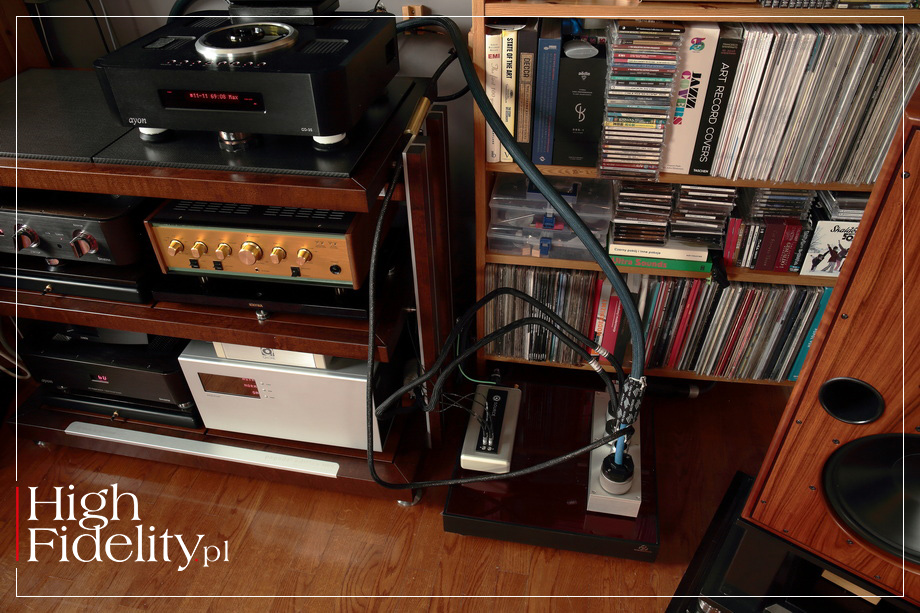 Obydwa kable wpięte były do listwy zasilającej AC Acoustic Revive RPT-4EU Absolute, która z kolei zasilana była przez 2,5-metrowy kabel AC Acrolink Mexcel 7N-PC9500. Acrolink podłączony był do gniazdka ściennego Furutech NCF, do których prowadzi osobna linia zasilająca z własnym bezpiecznikiem firmy HPA. Linia ta wykonana jest z 6-metrowego odcinka kabla Oyaide Tunami Nigo. ⸜ Płyty użyte w teście | wybór