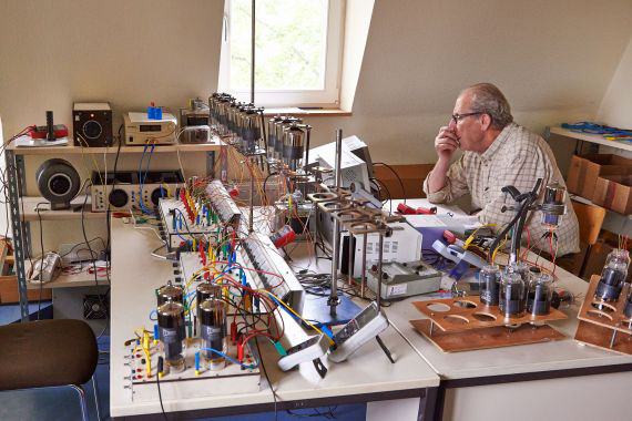 Besides the standard version, the tubes can now also be ordered with a silver wired connection inside the base. For now only the ER211 is available with this feature. The Elrog tubes can be sourced through Thomas Mayer. He is reachable by email: thomas@vinylsavor.de. ![]() Here you can also get further information about the tubes. The price is 1200 Euros for a matched pair ER211 and 1300 for a of pair ER845. Nothing for cheapskates. Or are they? Elrog products are known for the long life time. And aficionados would be glad to find a pair NOS 845 at this price. ![]() For me it is always most interesting to get to know the person behind a product. But unfortunately Elrog resides pretty much at the other end of Germany. Therefor the following interview was done by phone. I hope to have a personal meeting during the High End fair in Munich. Interview with Dr. Klaus Schaffernicht ![]() Jürgen Saile: How did the company ELROG start? Dr. Klaus Schaffernicht: I worked at Telefunken for 18 years. 1980 I quit my employment and got an offer to manage a factory for night vision devices. But I always wanted to run my own business and founded ELROG a few years later in 1986 in Lüneburg. The Bavarians didn't want to have a company that made such strange things like tubes which led me to settle in the North of Germany. JS: What did you produce back then? Dr. KS: At the beginning I wanted to continue making my specialities for printing machinery. But then the laser arrived and tubes were not needed any more. So I teamed up with the company Hameg and started making cathode ray tubes for oscilloscopes. Later I broadened the portfolio with tubes for the Tornado military jet and for military helicopters. Here we did redesigns to increase lifetime. Unfortunately this made the products too good with a lifetime of 25.000 hours so no replacement parts were needed any more. We had 20% market share with oscilloscope CRTs. But then the price started to go down with increasing production from far east. So we were forced to stop production at a certain time when the business was not profitable any more. JS: How did you come to audio tubes? Dr. KS: The production of a vacuum tube is always quite similar. When you look at a Chinese or Czech 211 these are copies of what RCA did. RCA developed this type for the US army. It was used in telecommunication devices. We use a different kind of construction. I wanted to get rid of the light bulb stuff. This unexpectedly improved the sound quality. But there is more. We put the getter on a defined voltage potential. It is connected to the plate. This way the tube operates in a more stable way. This is not a new invention but was common practice in CRTs. JS: Would it be valid to say that ELROG tubes match the quality of the old Telefunken? Dr. KS: In terms of sound quality, we are the best, no doubt about that. During the first two years we had several problems, but all of them got solved. JS: How long does it take to manufacture a 211? Dr. KS: We are a small company. That's why we can only produce a limited number of tubes per day. JS: Are there plans to make other types besides the 211 and 845? Dr. KS: I didn't want to mention that since we are quite early in the development phase. But we are working on a 300B. 300Bs are nowadays made by many suppliers. We want to make sure we deliver the best possible 300B. First prototypes are done and we are running comparisons with the historic 300B. Our goal is to make at least an equally performing tube as the Western Electric tube. JS: Do you have data for the lifetime of your tubes? Are you running long term tests? Dr. KS: Yes of course. We have sample tubes running continuously. We currently passed the 3000hr mark. Our goal is to reach 5000hrs. But we have not verified that yet since the tests still need to continue. JS: Dr. Schaffernicht, thank you very much for the interview. When looking for “quality made in Germany”, Elrog tubes perfectly match that. Built like a tank. The tubes are produced according to standards as used for the military. No Chinese Nostalgia toys. These tubes sell through their exceptional sound quality. Everybody who tried Elrog tubes in his amplifier, kept them. ![]()