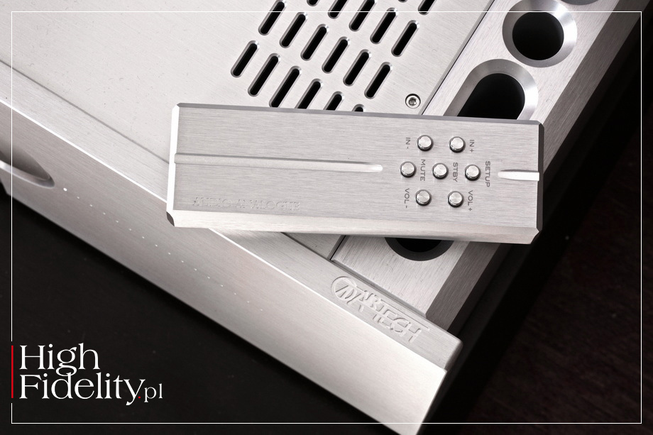 Wyjścia głośnikowe są pojedyncze, oparte na dobrze wyglądających, wygodnych w obsłudze gniazdach Propeller Post. Wykonane są z miedzi tellurycznej – 99,5% miedzi (Cu) i 0,5% telluru (Te) – oraz śladowych ilości srebra i fosforu i mają bardzo wygodne zakrętki w formie śmigła. Tellur jest dodawany do miedzi w celu poprawy skrawalności metalu. Maestro 2.0 jest dostępny w srebrnym i satynowym czarnym wykończeniu i jest wyposażony w pilota zdalnego sterowania wykonanego z litego aluminium. To potężny, robiący wrażenie, projekt. Na koniec dodajmy, że Audio Analogue należy do grupy producentów, którzy po pełnoskalowej wojnie rozpoczętej przez Rosję w 2022 roku nie zerwali współpracy z tamtejszym dystrybutorem. Zapewne dla symetrii mają dystrybutora również w napadniętej Ukrainie. ▌ ODSŁUCH JAK SŁUCHALIŚMY • Wzmacniacz zintegrowany Audio Analogue Maestro 2.0 testowany był w systemie referencyjnym „High Fidelity”. Porównywany był do dzielonego wzmacniacza odniesienia, czyli przedwzmacniacza Ayon Audio Spheris III i tranzystorowego wzmacniacza mocy Soulution 710. Podczas testu urządzenie stało na swoich nóżkach na górnej, węglowej półce stolika Finite Elemente Pagode Edition Mk II.