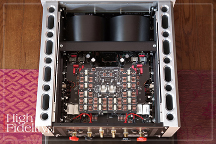 Aby utrzymać niski poziom szumów, firma zaprojektowała cały układ elektroniczny jako tor zbalansowany, od wejścia do wyjścia. Urządzenie oferuje pięć wejść, z czego trzy są niezbalansowane (RCA), a dwa zbalansowane (XLR). To wejścia liniowe – testowany wzmacniacz jest klasycznym produktem tego typu, bez przetwornika D/A, odtwarzacza plików, ani nawet przedwzmacniacza gramofonowego i wzmacniacza słuchawkowego.