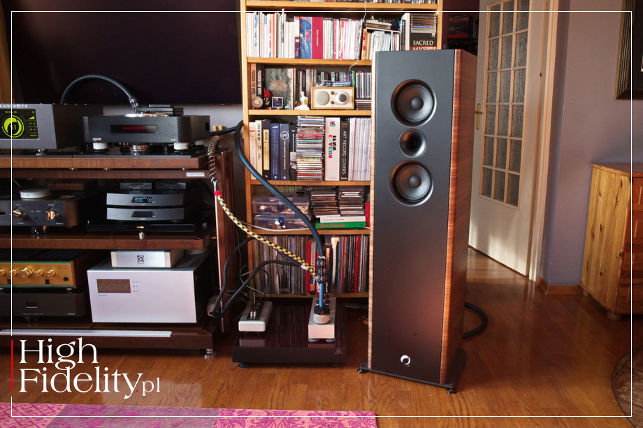 Wszystkie te zabiegi te pozwoliły osiągnąć wysoką skuteczność, 92 dB (1 W/1 m/2,83 V) i to przy stabilnej impedancji 8 Ω. Czyli kolumny są przyjazne wzmacniaczom lampowym oraz tranzystorowym o niskiej mocy. Dodajmy, że kolumny → MACH 4, wzmacniacz zintegrowany → SHINAI oraz przedwzmacniacz gramofonowy → CELIO IV od lat są częścią systemu referencyjnego Marka Dyby, którego znają państwo nie tylko z tych łamów. ▌ ODSŁUCH JAK SŁUCHALIŚMY • Wzmacniacz Solo oraz kolumny Mach 2 Estrema testowane były w systemie „High Fidelity” z którym były też porównywane. Wzmacniacz znalazł się na górnej półce stolika Finite Elemente Pagode Edition Mk II, zaś kolumny stanęły w polu półbliskim. Oznacza to, że znalazły się w odległości 220 cm od miejsca odsłuchowego oraz 240 cm od siebie (licząc od środka przedniej ścianki). Od tylnej ściany miały 85 cm, licząc od środka ich tylnej ścianki. W czasie testu kolumny były skręcone tak, że osie przetworników skierowane były na moje uszy.