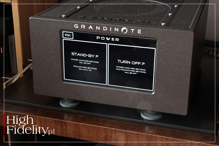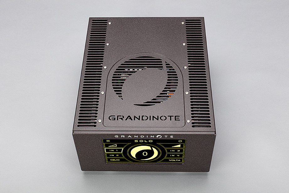 Kiedy spojrzymy na jej ofertę, podzieloną na dwie części, elektronikę i kolumny, zrozumiemy o czym mówię. We wzmacniaczach podstawą jest technologia Magnetosolid, nazwana w ten sposób przez założyciela firmy. Chodzi o taki układ półprzewodnikowy, który nawiązując do techniki lampowej, wykorzystuje na wyjściu transformatory głośnikowe. W odróżnieniu od McIntosha, który swoje rozwiązanie nazwał Unity Coupled, te we włoskich urządzeniach są toroidalne. Również i kolumny mają coś wspólnego z Amerykanami – chodzi w nich o utworzenie liniowego źródła dźwięku, z wieloma, niewielkimi przetwornikami tworzącymi, literalnie, pionową linię. Najsławniejszymi konstrukcjami tego typu innych marek są Infinity IRS V oraz McIntosh XRT 20, a z firm europejskich Dali Megaline. Do dzisiaj podobne konstrukcje oferuje jedynie McIntosh, obok współczesnych kolumn Master Line Source Mk II szwajcarskiej firmy Piega. ▌ Solo W MAJU 2023 ROKU, podczas wystawy High End w Monachium, firma Grandinote zaprezentowała wzmacniacz zintegrowany Solo, którego projekt plastyczny zrywał z wcześniejszym, utylitarnym wyglądem urządzeń tej firmy. Przednią ściankę, niemal w całości, zajął bowiem dotykowy wyświetlacz o przekątnej 9”, monochromatyczny, ale z wybieranym kolorem, na którym można wyświetlić zarówno elementy związane ze sterowaniem, jak i inne, na przykład VU-metry czy analizator widma. Massimiliano Magri, właściciel i główny konstruktor pisał wówczas: