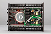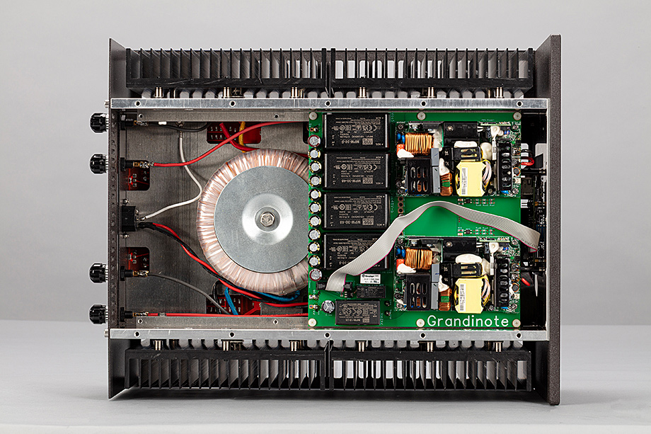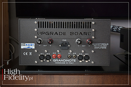 FUNKCJONALNOŚĆ • Wzmacniacz oferuje cztery wejścia liniowe – dwa RCA i dwa XLR. Jeśli chcemy, do XLR-ów można doprowadzić sygnał niebalansowany. Można w nim zamontować również, za dopłatą, opcjonalne płytki – przedwzmacniacza gramofonowego Celio oraz odtwarzacza plików Volta, otrzymując kompletne źródło dźwięku. Wyjścia zrealizowano za pomocą pojedynczych, świetnych gniazd 0703 Cu niemieckiej firmy WBT, gdzie na czystą miedź nanoszone jest bezpośrednio złoto. Są one niemal w całości plastikowe, ale nie ze skąpstwa, a z powodów technicznych. Wiadomo dziś, że pomaga to w redukcji prądów wirowych, a to ma prowadzić do lepszego dźwięku. Gniazda te należą do serii nextgen. Proponuję, żebyśmy jeszcze na chwilę wrócili do wyświetlacza. Można za jego pomocą regulować siłę głosu – albo za przycisków, albo jadąc palcem po okręgu, jakbyśmy mieli klasyczną gałkę. Zmieniamy tu również wejścia i wchodzimy do menu. A wyłączając go możemy wybrać jeden z dwóch trybów – „standby” albo „off”. W pierwszym wyłączamy zasilanie tylko dla końcówki, a przedwzmacniacz jest „pod prądem”. W drugim wyłączamy całość. Będąc w menu możemy zmienić czułość wejściową, balans między kanałami, jak również jasność oraz kolor (!) wyświetlacza. A tych jest kilka: biały, cyjanowy, żółty, zielony, czerwony, niebieski, fioletowy i pomarańczowy. Jest tam również funkcja, która znakomicie się sprawdza w codziennym użytkowaniu – przyciemniania. Ustalimy, po jakim czasie się to dzieje i do jakiej jasności schodzimy. Wzmacniacz nie ma pilota zdalnego sterowania, co jest dość zaskakujące i niewygodne. Sterowanie z wyświetlacza może się wydawać intuicyjne, ale trzeba się do niego przyzwyczaić. TECHNIKA • Zacząłem opis wzmacniacza Solo od funkcjonalności i zatrzymałem się dłużej przy wyświetlaczu dlatego, że to dwa elementy, które pokazują kierunek zmian w konstrukcjach tej firmy, z którym zapewne będziemy mieli do czynienia w przyszłości. Nazwanie urządzenia w dokładnie ten sam sposób, jak swój pierwszy wzmacniacz, jeszcze z 2005 roku, wydaje się być znacząca, sygnalizując „nowe otwarcie”. Byłaby to zresztą dwudziesta rocznica jego powstania. Od strony technicznej wciąż podstawową technologią stosowaną przez Grandinote jest system MagnetoSolid. Przypomnijmy, że jest to nazwa opatentowanej przez Maxa technologii będącej połączeniem dwóch elementów: ferroMAGNETyczny oraz SOLID state. Jest to rozwinięcie techniki znanej odkąd tylko w audio pojawiły się lampy. Aby mogły one napędzić kolumny należało przystosować ich wysoką impedancję wyjściową do niskiej impedancji kolumn. Zapewniały to transformatory wyjściowe. Tranzystor zmienił tę regułę. Nie wszyscy się jednak z tego ucieszyli i wciąż, już z wyjściami prądowymi tranzystorowymi wciąż sięgali po to rozwiązanie. W przypadku Grandinote jest to o tyle niecodzienne, że są to transformatory toroidalne. W zastosowaniach lampowych są również rzadkie, a specjalistą w tej dziedzinie jest polski producent wzmacniaczy, Fezz Audio. Strona internetowa producenta mówi: