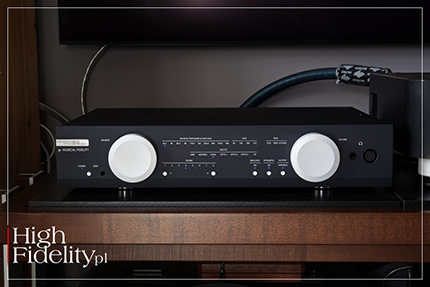 Podobnie, to znaczy głęboko i bardzo, ale to bardzo nastrojowo, zabrzmiał utwór REB FOUNTAIN zatytułowany ˻ 11 ˺Memorial, kończący jej płytę How Love Blends. To wspaniały przykład gry cieniem, ciszą, plamami światła i mroku. Pulsujący pod spodem bas nadawał całości wagi, a odzywający się daleko wgłębi syntezator, jakby wprost z filmów si-fi z lat 50., był czytelny i wyraźny. Wspaniale to zagrało. FILTRY CYFROWE • Jedną z ważniejszych zmian, jakie możemy wykonać w przetworniku M8x DAC jest włączenie lub wyłączenie upsamplingu. Kiedyś bardzo popularny, współcześnie porzucany często na rzecz filtrów cyfrowych, w tym przypadku jest kluczowy do osiągnięcia dźwięku, o którym mówię. Jego wyłączenie daje wyraźniejszy dźwięk, z mocniej zarysowaną górną średnicą, co też może się podobać. Ale w tym przypadku zabrakło mi w dźwięku masy i gęstości, dzięki którym CARI CARI z Drumming Woman zabrzmiało w tak hipnotyzujący sposób. Nieco inaczej działa wyłączenie re taktowania. Daje to mniej selektywny dźwięk, odsunięty nieco w przestrzeni. Wydaje mi się, e to funkcja, która pomaga w precyzyjniejszym lokowaniu dźwięków w czasie i przestrzeni. Dlatego też pozostawiłbym ten układ włączony cały czas, niezależnie od tego, jakiej muzyki słuchamy. Najmniej wagi mają, moim zdaniem, filtry cyfrowe. Choć i w tym przypadku da się wskazać dwa, z którymi bym słuchał muzyki – to numery 4 i 5, czyli „Minimum phase slow roll off” oraz „Apodizing fast roll off”. Dają one najbardziej nasycony i gęsty dźwięk o najlepszej rozdzielczości i naturalności. Pozostałe są nieco chudsze na basie i niskiej średnicy, jak i mniej klarowne. Najgorzej wypada filtr IIR zaimplementowany w układzie DA, czyli numer 8 na wskaźniku. SŁUCHAWKI • Wzmacniacz słuchawkowy jest wartościową częścią tego urządzenia. Unikałbym z nim słuchawek IEM, ponieważ szum własny wzmacniacza jest wówczas bardzo mocno słyszalny, a dźwięk dość cienki. Natomiast z dobrymi klasycznymi słuchawkami dostaniemy pełnię, dostaniemy głębię, dostaniemy wreszcie ładne uderzenie. Basu nie będzie zbyt wiele, nie tak jak przez kolumny, a wyższy środek będzie wyraźniejszy, jednak to wciąż będzie ten dam idiom, ten sam kierunek. Jeśli to tylko możliwe, warto połączyć słuchawki kablem zbalansowanym. Dźwięk w takiej konfiguracji jest mocniejszy i bardziej energetyczny. Z wyjściem niezbalansowanym też jest bardzo fajnie, należy się jednak liczyć z mniej klarownymi krawędziami i mniej precyzyjnym lokowaniem instrumentów na wirtualnej scenie dźwiękowej. I nie miało przy tym znaczenia, czy słuchałem muzyki przez magnetostatyczne słuchawki HiFiMAN HE1000 v2, czy dynamiczne Sennheiser HD 800, a nawet stare, studyjne słuchawki AKG K271. Ze wszystkimi brzmienie było głębokie i nasycone, po prostu bardzo fajne. PRZEDWZMACNIACZ • Podałem tę funkcję na końcu, ponieważ wydaje mi się ona czymś dodatkowym. To naprawdę fajny dźwięk, nie ma nad czym się pastwić. Jest barwa, jest dynamika, jest podkreślony, fajny średni bas. Ten jest dość mocny i konturowy, warto więc pomyśleć o lepszym wytłumieniu pokoju. Ale też słychać, że rozdzielczość jest niższa i że plany są podciągane do przodu, przez co głębia sceny jest zminimalizowana. Jest dobrze, ale – jak mówię – to dodatek. ▌ Podsumowanie NIE WIEM, CZY PAŃSTWO ZWRÓCILI na to uwagę, ale – odchodząc na sekundę od tego testu – opisując wzmacniacze firmy Accuphase przez lata zwracałem uwagę na niezgodność tego, co słyszę ze stereotypami. Chodzi o powszechne postrzeganie dźwięku urządzeń pracujących w klasie A i AB. Ta pierwsza jest postrzegana jako „ciepła” i „naturalna”, a druga „dokładna” i neutralna”. To nie jest prawda. Znacznie ważniejsze jest to, jak dany układ został zaprojektowany. Podobnie, żeby nie powiedzieć – tak samo, jest z lampami i tranzystorami. Przekonanych nie przekonam, jednak ci, którzy mają uszy, niech nadstawią choć jedno: przetwornik M8x DAC brzmi, jakby był przetwornikiem lampowym. Z kolei seria Nu-Vista tego producenta, z miniaturowymi nuvistorami w roli elementów wzmacniających, brzmi dokładniej, w bardziej otwarty sposób i bardziej selektywnie. Testowany tym razem DAC jest przez to niesamowicie przyjemny. Gra bardzo, bardzo ładnie z dowolnym materiałem muzycznym. I nawet jeśli go trochę „przygina” w kierunku, w którym patrzy, to robi to z miłością i czułością. A dodać do tego należy obecność dekodera MQA-CD, co dla ludzi słuchających muzyki klasycznej powinno być czymś w rodzaju „gamechangera”, ponieważ płyty MQA-CD brzmią doskonale. Dodajmy do tego wyjątkowo dopracowany, również ciepły wzmacniacz słuchawkowy, możliwość dostosowania dźwięku do własnych upodobań, a będziemy mieli niezwykle kompetentny komplet. ▌ BUDOWA SERIA M8 JEST NAJNOWSZĄ LINIĄ tego brytyjskiego, należącego obecnie do austriackiej firmy Audio Tuning, producenta. W długiej historii jej powstania, z którą możemy się zapoznać na poświęconej temu zagadnieniu zakładce na stronie internetowej, dowiemy się, że chodziło w niej o jak najlepsze wykorzystanie funduszy, które miały być przeznaczone na poszczególne produkty, zachowując jak najlepszą funkcjonalność i dźwięk. Jak czytamy, gdy przeanalizuje się, gdzie idą pieniądze, w highendowych wzmacniaczach co najmniej 98% kosztów lokowane jest w panelach przednich, metalowej konstrukcji i radiatorach. Dlatego też: