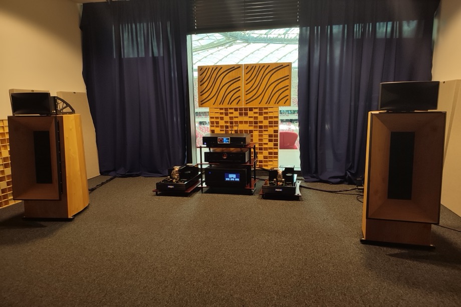 Główna prezentacja miała standardowo lokalizację na parterze hotelu i składała się z kolumn Amethyst, w pełni zbalansowanego systemu Magnetar linii SuperNova (200W monobloki KT150, przedwzmacniacz liniowy). Jako źródło wykorzystano DAC-a Lampizator Pacific oraz polskie kable i akcesoria KBL Sound.
