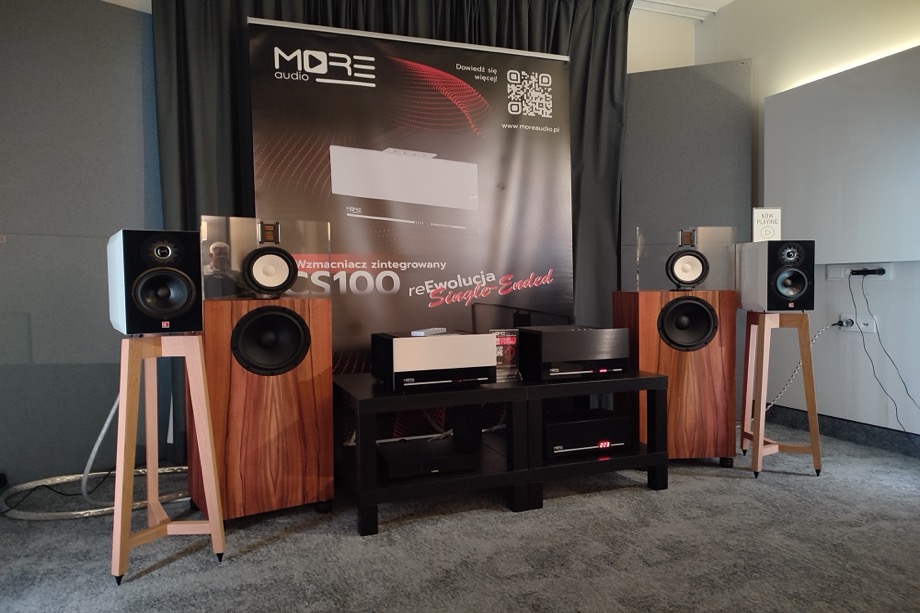 Firma MORE Audio po zeszłorocznym sukcesie wzmacniacza CS 100 zaprezentowała jego czarną wersję oraz udostępniła ciekawą opcję wynajmu długoterminowego sprzętu. Wzmacniacz grał z kolumnami IQ ULTRA Qualio. Hotelowa prezentacja oferty Closer Acoustics to system Full OGY napędzany wzmacniaczem lampowym Provocateur 300B Signature. Jako źródło pracował przetwornik Lampizator DAC Amber 5. Rozwinięciem oferty była prezentacja na Stadionie PGE Narodowym kolumn BLOCKS (open-baffle).