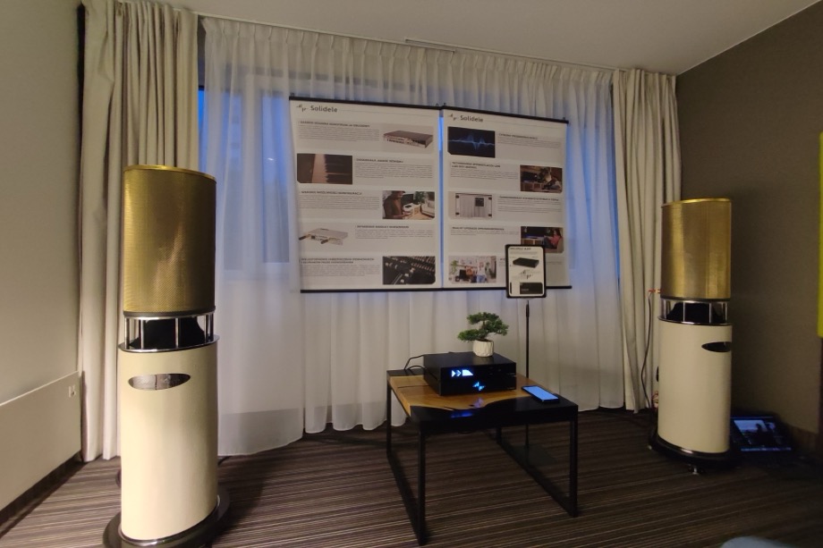 W pokoju Sisound odbyła się premiera nowej linii kolumn podłogowych Solidus X oraz Solidus M (konstrukcje ze wstęgami planarnymi i obudową zamkniętą). Całość napędzał wzmacniacz zintegrowany Staccato BU-01. Na szóstym piętrz swoją europejską premierę miały elektrostaty Vitorla firmy Popori Acoustics. To pierwsze kolumny tego typu, które dane mi było słyszeć podczas tej edycji wystawy, a patrząc na ofertę innych wystawców kolumn tego typu było naprawdę sporo.