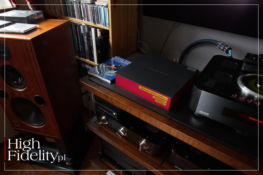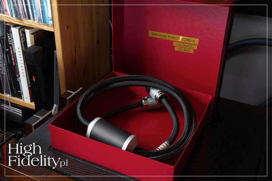 Na całość naciągany jest płaszcz CSF (Carbon Shield Mesh Tube). W przeciwieństwie do konwencjonalnych nylonowych lub poliestrowych rurek siatkowych, CSF Carbon Shield Mesh Tube jest wykonany z poliuretanu nasyconego w około 10% cząsteczkami węgla, co stanowi limit produkcyjny dla takich materiałów. Ta infuzja ma zapewniać ekranowanie przed zewnętrznymi zakłóceniami, blokować szum promieniowania emitowany przez sam kabel i pochłaniać prądy wirowe. Podsumujmy więc budowę kabla Absolute Power Cord-K: • materiał przewodnika (solid-core): PC-TripleC (Pure Copper-Continuous Crystal Construction), Kable są dostępne standardowo w długości dwóch metrów, ale na zamówienie dostępne są inne odcinki; 2-metrowy kabel kosztuje 39 900 złotych, a 2,5-metrowy, który testowaliśmy, 46 900 złotych. ▌ ODSŁUCH JAK SŁUCHALIŚMY• Kabel zasilający Acoustic Revive Absolute Power Cord-K był w czasie odsłuchu porównywany do trzech innych kabli, w trzech różnych miejscach systemu referencyjnego „High Fidelity”.