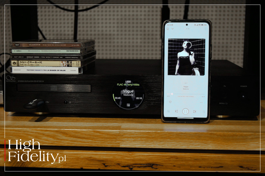 Spróbowałem porównać nagranie Madonny, o którym wspomniałem, odtwarzając je z płyty CD, później korzystając z obrazu płyty zapisanego w formacie FLAC (dysk zewnętrzny) i na końcu z serwisu strumieniowego (Tidal) w dwóch konfiguracjach, raz wykorzystując Shanlinga jako DAC (transportem był WiiM Ultra), a raz jako renderer UPnP (źródłem była aplikacja Audirvana). Za punkt wyjściowy przyjąłem płytę CD, ponieważ wszystko było „skrojone” pod mój gust, a przekaz oferował liniowy, szczegółowy dźwięk z dobrą sceną i lokalizacją instrumentów. Odtworzenie tego samego utworu z pliku pokazało, że można inaczej spojrzeć na materiał źródłowy dokonując delikatnego przesunięcia tonalnego. Czy było gorzej? – Raczej nie. Inaczej? - Oj tak! Którą wersję wybierzemy? – Cóż, decyzja do łatwych nie należy. Na koniec zostało mi sprawdzenie funkcji strumieniowania sygnału (UPnP – pliki – oraz DAC – sygnał cyfrowy). W obu wariantach połączeniowych wszystko zależało od materiału źródłowego. Inaczej grał Tidal, inaczej Qobuz, a jeszcze inaczej Spotify. Niejednokrotnie na łamach „High Fidelity” wspominaliśmy o różnicach między tymi serwisami i konia z rzędem temu, który wskaże co gra najlepiej. Co zaskakujące, każda z tych prezentacji miała swój urok i w zależności od konkretnej płyty przeskakiwałem albo z Audirvany do WiiM’a, albo wybierałem wersję z innego serwisu. Jedno, co na pewno mogę stwierdzić, to że za te pieniądze, przypominam niecałe trzy tysiące złotych, tak funkcjonalne i tak dobrze brzmiące urządzenie ciężko będzie znaleźć. ▌ Podsumowanie SHANLING CD-S100 IV (V25) to z jednej strony zwykły odtwarzacz płyt CD, a z drugiej dość zaawansowany kombajn obsługujący wiele formatów mediów cyfrowych. Samo odtwarzanie płyt CD działa poprawnie i w kategorii odtwarzacza CD dźwięk się broni, jest dość naturalny, z delikatnie wysuniętą średnicą. Dolne rejestry może nie mają takiej masy, jak w droższych urządzeniach, ale dzięki temu nie przysłaniają reszty pasma pozwalając zanurzyć się w szczegóły nagrania. Góra pasma jest delikatnie wygładzona, ale bardzo rozdzielcza, przez co dobrze uzupełnia całościowy obraz. Granie Shanlinga jest bardziej zbliżone do tego, do czego przyzwyczaiły nas przetworniki AKM, czyli podążania w kierunku „velvet sound”. Ciągle jednak jest to rozwiązanie typu Delta-Sigma. Czy to źle? Ponad 90% highendowych rozwiązań wykorzystuje tego typu przetworniki i większość odbiorców przyzwyczaiła się już do tej sygnatury grania. Dziwi mnie tylko zupełnie , trochę słabsza, jakość grania z pozostałych źródeł. Nie wydaje mi się, żeby producent potraktował je jakoś po macoszemu, ale ewidentnie brakło tutaj spójności w graniu z różnych źródeł. Może po prostu płyta CD rulez... Ale, jednak, wielki plus za obsługę chyba wszystkich znanych mi cyfrowych formatów audio, w tym obsługę obrazów płyt CD i SACD (pliki ISO). Gdybym miał pomarudzić, to jest kilka elementów, których brakuje. Najbardziej odczuwalny jest brak gniazda RJ45 dla podłączenia urządzenia do sieci lokalnej. Jest oczywiście wbudowane Wi-Fi, ale jego podłączenie, jak i zupełnie bezsensowna sieć tworzona przez odtwarzacz, to kolejne zakłócenia w otoczeniu naszego sprzętu. Przydałoby się dodatkowe gniazdo USB z tyłu obudowy. Podpinanie dysku zewnętrznego z przodu nie wygląda zbytnio estetycznie. Tacka na płyty jest bardzo lekka i delikatna. Odczyt zawartości płyty CD jak i samo przełączanie pomiędzy utworami trwa dość długo i potrafi być irytujące. Zostaje jeszcze wyświetlacz (ograniczona funkcjonalność przy CD i USB DAC) oraz aplikacja mobilna (ergonomia i jeszcze raz ergonomia).
