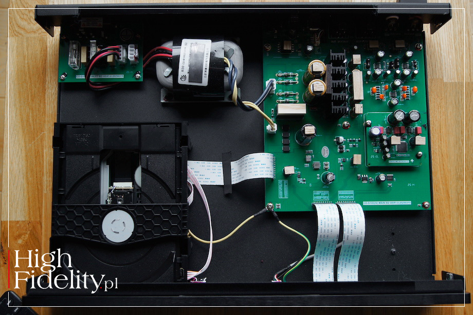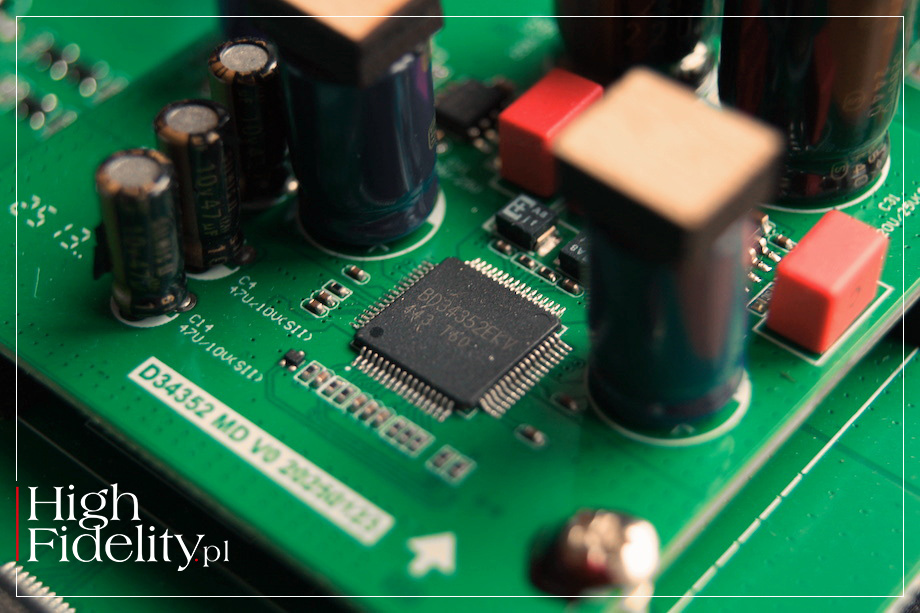 Trzeba to jednak zobaczyć w szerszym kontekście. Zauważmy, że za kwotę 2800 zł dostajemy urządzenie o wyjątkowo rozbudowanej funkcjonalności, które poza odtwarzaniem zwykłych płyt CD oferuje nam funkcjonalność DAC-a i odtwarzacza, zarówno plików zewnętrznych (Wi-Fi, BT), jak lokalnych. Dodatkowo mamy możliwość podłączenia zewnętrznego przetwornika (urządzenie pracuje wtedy jako transport) oraz wykorzystania wyjścia regulowanego do wysterowania końcówek mocy czy też kolumn aktywnych. Jak na rozwiązanie budżetowe propozycja brzmi kusząco, a dla malkontentów pozostają wyższe modele Shanlinga chociażby testowany niedawno na tych łamach odtwarzacz Shanling MCD1.3 (→ TUTAJ). ▌ BUDOWA WEWNĄTRZ ODTWARZACZA znajdziemy zupełnie nowe, w porównaniu do poprzednich wersji, komponenty oparte na architekturze innego odtwarzacza CD Shanlinga ET3. Jako napęd zastosowano transport DA11. Układ DAC’a to BD34352EKV japońskiej firmy Rohm Semiconductor. Ten zaawansowany 32-bitowy stereofoniczny przetwornik typu Delta-Sigma oferuje obsługę sygnału PCM do częstotliwości 768 kHz oraz DSD aż do DSD512. Posiada możliwość wyboru dwóch filtrów cyfrowych (Sharp Roll-Off, Slow Roll-Off) oraz oferuje regulację głośności, z której, patrząc na specyfikację wyjścia regulowanego, Shanling w pełni skorzystał. Schemat blokowy układu D/A jest znacznie bliższy rozwiązaniom firmy AKM niż popularnym kościom Sabre. W stopniu analogowym (DAC oferuje wyjścia prądowe) zastosowano markowe opampy OPA1612 oraz MUSES8920. O prawidłowe taktowanie dbają zegary japońskiej firmy KDS, a całą elektroniką zarządza procesor Ingenic X2000. Solidne zasilanie opiera się na wykorzystaniu transformatora R30 o mocy 43 W. Co ciekawe, w testowanym egzemplarzu na kondensatorach przyczepione były małe kawałki drewna. Ta pochodząca rodem z DIY technika ma tłumić mikrowibracje i kontrolować rezonanse. Samo drewno w zależności od rodzaju ma odmienną gęstość i charakterystykę rezonansową, co w założeniu ma mieć wpływ końcowe brzmienie. Czy w tym przypadku miało to wpływ? Nie wiem, nie miałem możliwości porównania z wersją bez takich dodatków. Jeszcze dwa słowa o dość nietypowym, bo okrągłym, wyświetlaczu. W przypadku odtwarzania płyt CD jego rola ogranicza się tylko do podania aktualnej ścieżki, liczby wszystkich utworów i bieżącego czasu odtwarzania. Aż prosi się o możliwość odczytu czy to CD-Textu, czy pokazania okładki płyty, zwłaszcza, że przy odtwarzaniu plików czy też pracy w roli „streamera” okładki są dostępne i bardzo ładnie komponują się jako tło do wyświetlanych informacji.