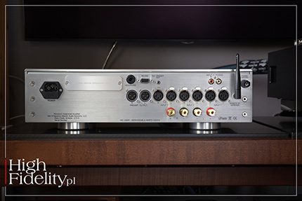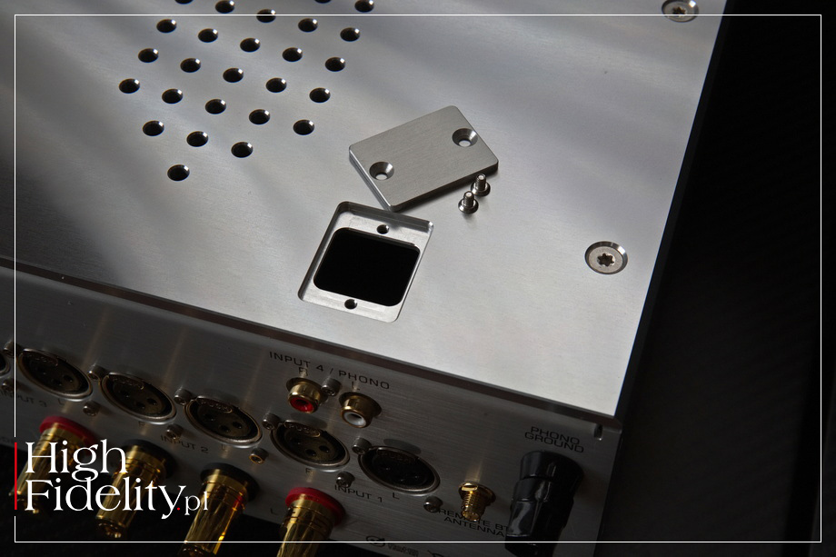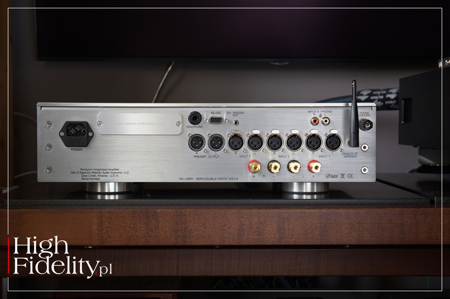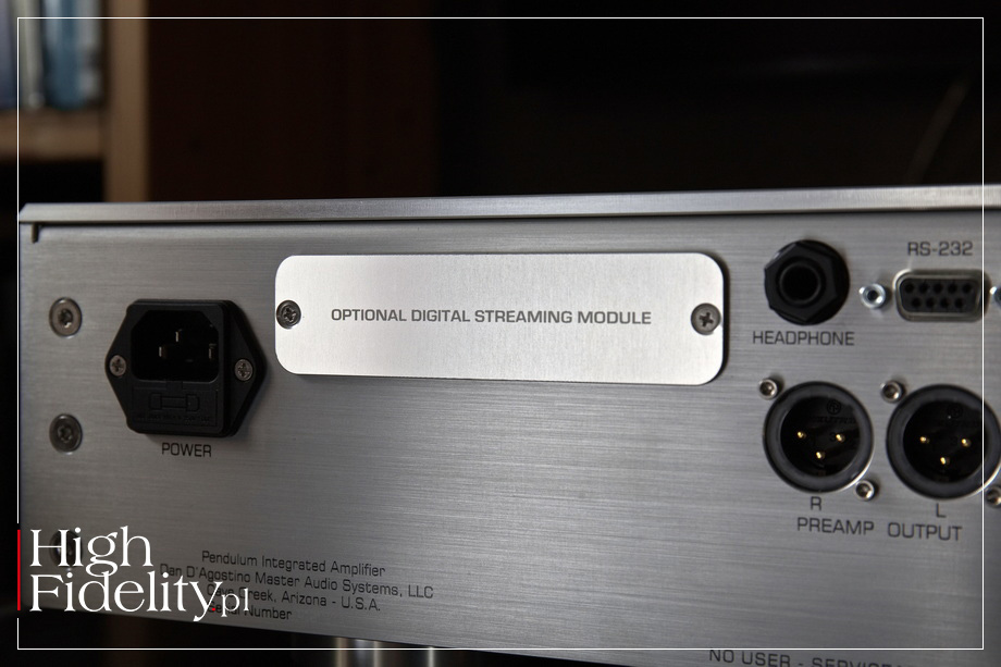 Jak czytamy w materiałach firmowych, u podstaw tej konstrukcji leżą rozwiązania zastosowane wcześniej w droższych produktach tej firmy. Dla przykładu, zbalansowany przedwzmacniacz oparty na tranzystorach JFET wywodzi się, jak czytamy, z „uznanego przedwzmacniacza Momentum C2”. Cały układ ma budowę dyskretną, ze sprzężeniem bezpośrednim (DC), czyli bez udziału kondensatorów. W zasilaczu zastosowano z kolei, wykonywany na zamówienie, potężny transformator toroidalny o mocy 750 W i kondensatory o pojemności prawie 25 000 μF. FUNKCJONALNOŚĆ • Podstawą Pendulum Integrated jest układ z trzema wejściami zbalansowanymi XLR i takim samym wyjściem z przedwzmacniacza, dzięki któremu można podłączyć subwoofer lub osobną końcówkę mocy. Podobnie, jak duża część współczesnych wzmacniaczy i przedwzmacniaczy, tak i Pendulum jest produktem otwartym na „opcje”. W podstawowej formie kupujący otrzymuje urządzenie z analogowymi wejściami liniowymi. Później może dokupić jedno z dwóch opcjonalnych „rozszerzeń”. Jeśli chce słuchać gramofonu i nie potrzebuje zewnętrznych przedwzmacniaczy, może zamontować w nim płytkę preampu gramofonowego; na tylnej ściance jest zamontowana fabrycznie para wejść RCA. Bez przedwzmacniacza działają one jak niezbalansowane wejście liniowe. To przedwzmacniacz współpracujący z wkładkami MM i MC, o wzmocnieniu 60 dB. Użytkownik ma możliwość wyboru impedancji obciążenia. Małymi DIP-ami pod płytką na górnej ściance zmienimy ją w krokach: 50, 100, 250, 500 Ω, 1 i 47 kΩ. Jest też opcja dla entuzjastów źródeł cyfrowych. Przykręcana do tylnej ścianki płytka modułu jest przetwornikiem cyfrowo-analogowym i odtwarzaczem plików w jednym. Producent mówi o tej opcji Optional Digital Streaming Module. Do wejść cyfrowych można podłączyć transport CD (Blu-ray), odbiornik TV (HDMI z wejściami Enhanced Audio Audio Return Channel – eARC) i komputer lub zewnętrzny transport plików. Ale, jak mówię, sama w sobie opcja jest również odtwarzaczem plików, pozwalającą na odtwarzanie plików PCM do 32 bitów i 192 kHz oraz DSD do DSD256. Producent informuje, że moduł dekoduje pliki MQA, choć tylko serwisów streamingowych, a nie z zewnętrznego napędu CD. Czytamy: