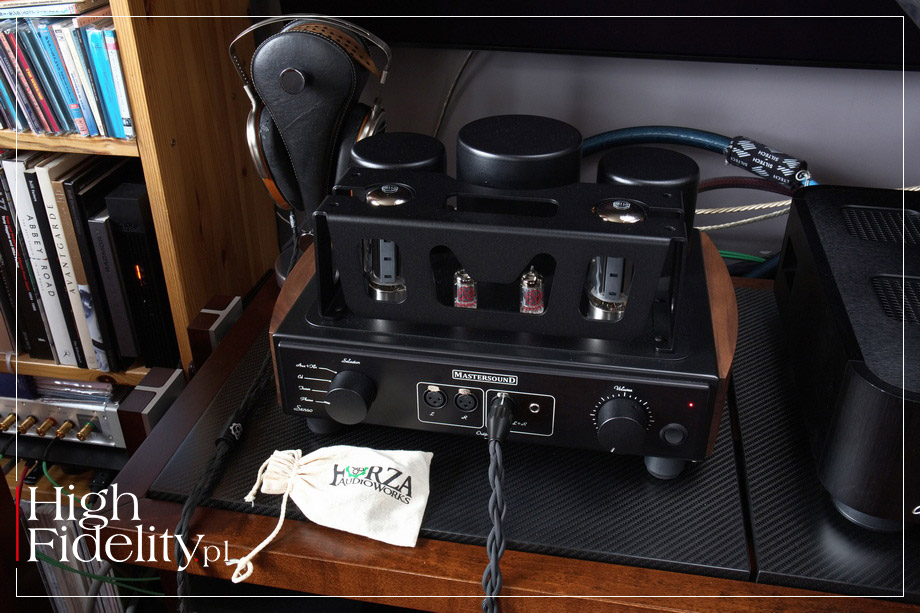 Na lampy założona jest solidna klatka chroniąca przed poparzeniem. Jeśli chcemy można ją odkręcić, korzystając z długich wkrętaków imbusowych. Wzmacniacz stoi na dość wysokich nóżkach z aluminium. Nie ma pilota, a zasilanie włączamy mechanicznym przełącznikiem na przedniej ściance. ▌ ODSŁUCH JAK SŁUCHALIŚMY • Wzmacniacz słuchawkowy Mastersound Senso testowałem w systemie referencyjnym „High Fidelity”. Jako źródło pracuje w nim odtwarzacz SACD Ayon Audio CD-35 HF Edition oraz odtwarzacz plików Lumin T3. Jako punkt odniesienia posłużyło mi wyjście słuchawkowe w odtwarzaczu CD S.M.S.L CD200 oraz we wzmacniaczu zintegrowanym Dan D’’Agostino Pendulum Integrated.