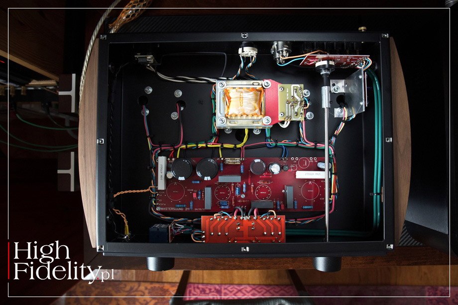 Wygląd i konstrukcja Senso jest typowa nie tylko dla tego producenta, ale generalnie dla wzmacniaczy lampowych. Obudowę wykonano ze sztywnych, giętych blach z aluminium, do których od przodu zamocowano płaski panel z naniesionymi opisami. Umieszczono na nim dwie gałki, zmiany wejść i siły głosu, a także trzy (a nawet cztery) gniazda słuchawkowe (patrząc od lewej): dwa trzypinowe (czyli klasyczne) gniazda XLR, osobno dla lewego i prawego kanału, 4-pinowe gniazdo XLR stereo oraz TRS 6,3 mm, czyli wtyk znany jako „duży Jack” (ciekawe, ale seksualne konotacje tej nazwy dawno się zatarły). O ile ostatnie z wymienionych wyjść podaje sygnał niezbalansowany, o tyle dwa pierwsze są zbalansowane. Jak to możliwe, skoro wzmacniacz Senso ma budowę single-ended, a więc z definicji niezbalansowaną? Otóż dlatego, że można nawinąć transformatory wyjściowe tak, aby automatycznie balansowały sygnał – to jedno z uzwojeń wtórnych – i równolegle podać sygnał niezbalansowany. Sygnał symetryczny pozwala lepiej wysterować słuchawki wyższą mocą, jest więc ostatnimi czasy preferowany w części urządzeń tego typu. Wspomniałem o selektorze wejść – Senso jest całkiem funkcjonalnym urządzeniem. Oferuje ono trzy wejścia RCA oraz jedno XLR. To ostatnie jest połączone równolegle z jednym z tych pierwszych. I jest również wbudowany, półprzewodnikowy przedwzmacniacz gramofonowy przeznaczony dla wkładek MM. Można więc za pomocą testowanego wzmacniacza zbudować niewielki, ale i rozbudowany system słuchawkowy. I nie musimy być ograniczeni wkładkami MM i MC HO, bo wystarczy dodać transformator step-up, aby korzystać z wkładek MC. Transformatory, jako się rzekło, są produkowane samodzielnie przez firmę Mastersound na nawijarce zaprojektowanej jeszcze dla założyciela, pana Cesare. Jak deklaruje producent, do ich produkcji używane są wysokiej klasy druty nawojowe z miedzi beztlenowej (OFC) oraz wysokiej klasy blachy o ziarnistej strukturze. Mają też mieć unikatową konstrukcję: zastosowano w nich „unikalną na skalę światową” technikę, która „przyczynia się do wyjątkowej jakości dźwięku”. Płytka z elektroniką pochodzi ze wzmacniacza zintegrowanego 211. Jednak tutaj zamiast lamp EL34 mamy mocniejsze KT120. Lampy są kupowane w dwóch miejscach. KT120 to lampa (niestety) rosyjska – niemal wszystkie nowe warianty lamp KT produkowane są w jednej fabryce ulokowanej w Saratowie (Saratów znajduje się w europejskiej części Rosji, nad rzeką Wołgą) i sprzedawane są przez właściciela, firmę New Sensor Company, pod marką Tung-Sol; swoją wersję mają również Chińczycy. Z kolei lampa sterująca jest „nasza” i jest dostarczana ze Słowacji. JJ Electronics wykonuje specjalną wersję podwójnej triody ECC82, ECC802S będący jej niskomikrofonowym wariantem o długich anodach, charakteryzującej się długowiecznością. „S” w jej nazwie oznacza „special quality”, co w przypadku lamp Telefunken i nowoczesnych lamp JJ przekłada się na wyjątkowo długą żywotność (ponad 10 000 godzin).
