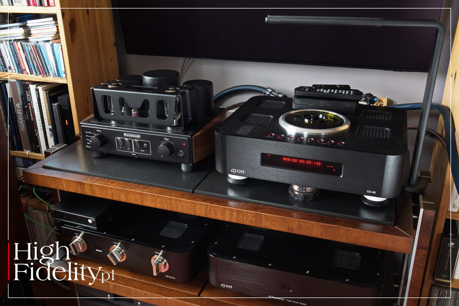 Wzmacniacz zasilany był przez kabel Acrolink Mexcel 7N-PC9100. Z odtwarzaczem SACD łączyły go interkonekty RCA Crystal Cable Absolute Dream, a z odtwarzaczem plików Siltech Single Crown, również RCA. » PŁYTY UŻYTE W TEŚCIE ⸜ wybór