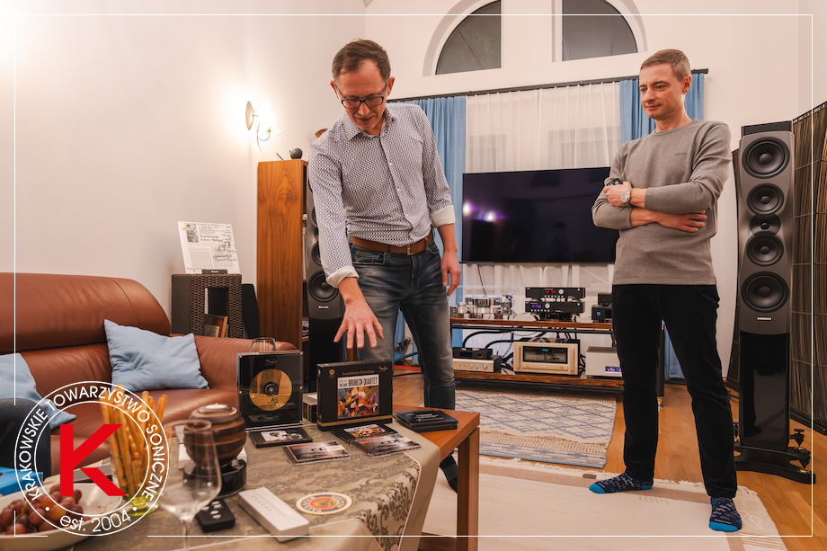 WOJTEK • Arturze :) To ten sam master, różnice między płytami są po prostu tak duże. JULEK • Znam tę płytę i uważam, że jest zajebista. To jest tak wspaniale nagrane, ta akustyka, odbicia. To realizacja-petarda. A przecież zostało to nagrane na magnetofonie, który uważam za gówniany, to jest na Revoxie A77. A brzmi to wybitnie. Nie chce mi się gadać – tym razem zdecydowanie lepiej zagrał „kryształ”. Był namacalny, plastyczny, rozdzielczy. TOMEK L. • Dla mnie to były tortury, nie cierpię tego typu muzyki i uważam ją za bezsensowną… Muzycznie – nie moja bajka. Tym razem zbyt jasna góra nie była z Crystalem wcale zbyt jasna, to była o wiele lepsza wersja. Była gładka i przyjemna. Z UHQCD nigdy bym tego nie posłuchał. TOMEK F. • Jeżeli cokolwiek przyspiesza bicie mojego serca w muzyce klasycznej, ale nie klasycznym black metalu, to są to utwory Erica Satie i właśnie La folia, którą usłyszałem po raz pierwszy na drugiej edycji Audio Show i której potem przez długi czas szukałem, na CD. A to były jeszcze czasy przed internetem. Ponieważ mam sobie zrobić prezent na Black Friday, to kupię wersję UHQCD tej płyty. Jeślibym miał więcej pieniędzy, to kupiłbym Crysta Disc, ale tu i teraz – to wspaniała wersja. Szklana płyta zagrała lepiej, nie ma co do tego wątpliwości. Przejrzystość wysokich tonów była większa, całość płynniejsza, więcej też było pięknie wybrzmiewających detali. Wersja UHQCD brzmiała nerwowo wewnętrznie jak kiedyś pliki. Na szklanym dysku była stabilność, gęstość – najfajniejsza rzecz, jaką dzisiaj usłyszałem. Zresztą – płyty CD „robią robotę”… TOMEK L. • Powiedz to, co mówiliśmy u Andrzeja, Wojtek będzie zadowolony (śmiech). TOMEK • No tak… Słuchaliśmy w trójkę cały wieczór muzyki z plików na sprzęcie, gdzie same kable kosztowały około trzy miliony złotych. Dwa odtwarzacze plików kosztowały po 60 000 każdy. Na koniec podłączaliśmy transport SACD Onyxa za niecałe 10 000, po czym wypadliśmy z butów i stwierdziliśmy, że Wojtek męcząc nas tyle czasu płytami miał ostatecznie rację z nośnikiem i technologią CD czy SACD – to po prostu lepszy dźwięk :) I do tego formatu trzeba wrócić. ANDRZEJ • To prawda, po czym spanikowałem, bo pozbyłem się kolekcji płyt CD uznając, że czas na pliki. A tu nowy system i okazuje się, że pliki grają świetnie, ale nie mają startu do CD. A Crystal Disc w ogóle wywraca stolik. Ta muzyka to nie moje klimaty, ale realizacja – świetna. No i Crystal zagrał lepiej, chociaż różnica nie była jakąś przepaścią. RYSIEK B. • Uważam, że wybór nagrania był nietrafiony, za jasno mi to zagrało. Nie będę więc nic mówił… Nie zagrało to źle, ale cierpiałem… JAREK • Czytelnicy nie mogą tego zobaczyć, ale widziałem cierpienie Ryśka, ledwo usiedział :) Co powiedziawszy dodam, że zgoda z Julkiem, to świetna realizacja. Często słyszę opinię, że coś gra lepiej, bo zniknęły sybilanty, czyli syczące zgłoski. Ale przecież sybilanty to część głosu, bez nich jest uboższy, muzyka jest uboższa. Nie rzecz w tym, aby je wyciąć, ale aby odpowiednio pokazać. A to jest trudne. Na Crystal Discu to tak brzmiało. No i świetne oddanie przestrzeni w tej wersji. Słyszę olbrzymi potencjał w tej technologii. No i mastering tych płyt jest fantastyczny. PIOTR • Ciężko coś dodać – to pięknie zrealizowana płyta. Lubię ją. A Crystal Disc jest o klasę lub dwie, lub trzy lepszy. Przede wszystkim przez lepszą akustykę. Moim zdaniem właśnie tutaj było słychać, jak duża różnica jest między UHQCD i Crystal Disc. Bez dwóch zdań wybrałbym „szkło”. Ale ponieważ jest jak jest, kupię „plastik”. ARTUR • Moim zdaniem Crystal Disc rozbił bank – zagrał tak żywo, tak naturalnie, jak nic wcześniej. Olbrzymia przestrzeń. A wysokie tony mi nie przeszkadzały, ponieważ to żyło, było prawdziwe. uszka też mi się podoba i Crystal rulez!!! ▌ Podsumowanie PO OFICJALNYCH ODSŁUCHACH przeszliśmy do porównań płyt Crystal Dics z wcześniejszymi remasterami, czy to Sony, czy Mobile Fidelity, Audio Analogue, japońskimi płytami itd. Za każdym razem można było docenić, co te wytwórnie robią, to był bardzo dobry dźwięk. Ale równocześnie, również za każdym razem, Crystal pokazywał coś, do czego tamte nawet nie podbiegały. Czystość, głębia, analogowa płynność i rozdzielczość – to powtarzało się z tymi płytami raz po raz.