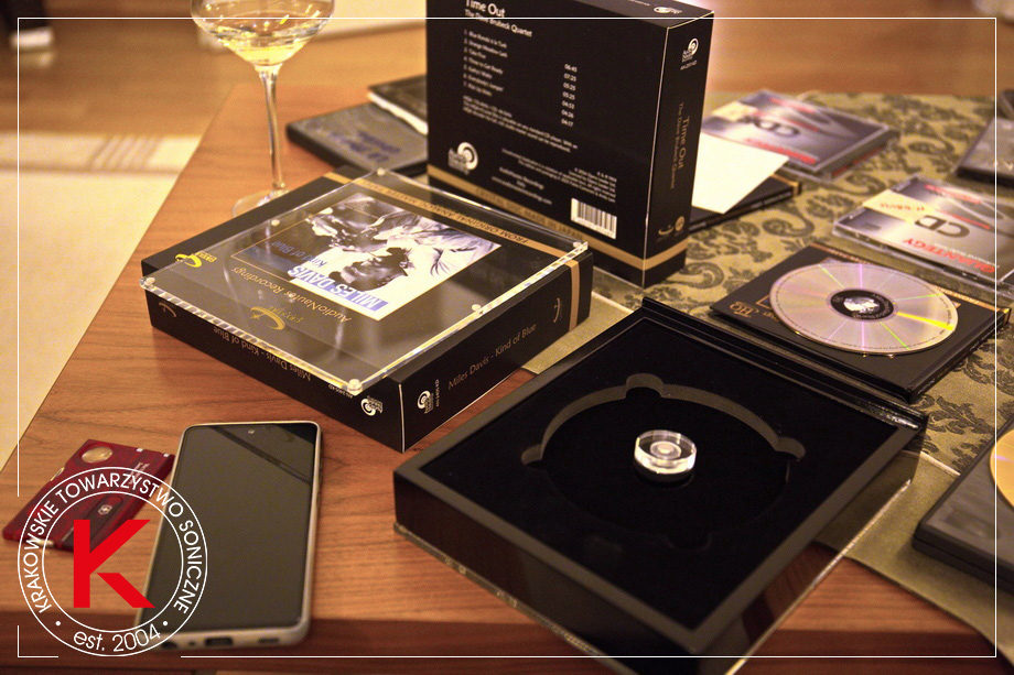 Jednak nowe wydanie JATP na płycie Crystal Dics była odpowiednią okazją, aby odpowiedzieć na pytanie: dlaczego nie? Kodowanie jest tanie i mogę zainwestować w jeden test – wiadomo, że testowanie to jedyny sposób, aby uzyskać odpowiedzi. I to było to! Cieszymy się, że płyty CD są w porządku, ale kodowanie MQA w niektórych konkretnych treściach daje dużą różnicę. Należy wspomnieć o jednym ważnym aspekcie: sygnał 24/176, który otrzymujemy po rozpakowaniu sygnału MQA, jest wykonany z taśm, jest natywny. Nie jest więc wykonany z mastera 16-44,1. Dlatego to, co jest przygotowane na potrzeby CD zostaje w pierwotniej formie, nie poświęcam czasu i pieniędzy na ponowne wykonanie w 24-176, po prostu pozostawiam je takimi, jakie są. A teraz będę się starał zaoferować MQA dla nowych tytułów – rynek azjatycki tego wymaga. ● ▌ ODSŁUCH JAK SŁUCHALIŚMY • Odsłuch został podzielony na cztery części, każda z jednym tytułem. Do dyspozycji mieliśmy płyty UHQCD i Crystal Disc z tymi samymi płytami i tym samym masterem, różniły się one tylko sposobem wykonania dysku. Porównywaliśmy je słuchając trzy razy tego samego utworu w kolejności A/B/A i B/A/B.