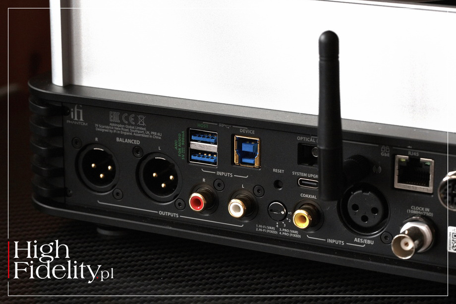 ⸜ Power Elite, → IFIAUDIO.pl, dostęp: 14.01.2026. W pudełku, oprócz urządzenia, znajdziemy również kable USB (3.0 i USB-A), zasilacz dla OptiBoxa, zasilacz iPower Elite 15 V, konwerter OptiBox, pilot zdalnego sterowania (aluminiowy, ładny, choć nie do końca ergonomiczny), kabel ethernetowy RJ45, interkonekt analogowy RCA, kabel optyczny SC→SC, a także dwie instrukcje – „szybką” i klasyczną. Z czasem kable zapewne wymienimy na inne, ale dzięki nim można odpalić odtwarzacz tuż po wyjęciu z pudełka. Powtórzmy: to wyjątkowo złożone, znakomicie wyposażone, kompletne rozwiązanie. Może być centrum systemu audio, ale jeszcze lepiej sprawdzi się jako kompaktowy system słuchawkowy. Podłączmy do niego transport CD, na przykład S.M.S.L PL200T, Shanling ET3, → ONIX ZENITH XTS20, zachowując zwartość systemu, a będzie pełnia szczęścia. ▓ ODSŁUCH JAK SŁUCHALIŚMY • Odtwarzacz plików iFi Audio iDSD Phantom testowałem w systemie referencyjnym „High Fidelity”. Jako źródło pracuje w nim odtwarzacz SACD Ayon Audio CD-35 HF Edition oraz odtwarzacz plików Sforzato DSP-05EX z zegarem PMC-05EX. Jako punkt odniesienia posłużył mi wzmacniacz słuchawkowy Mastersound Senso oraz wyjście słuchawkowe w odtwarzaczu CD S.M.S.L CD200.
