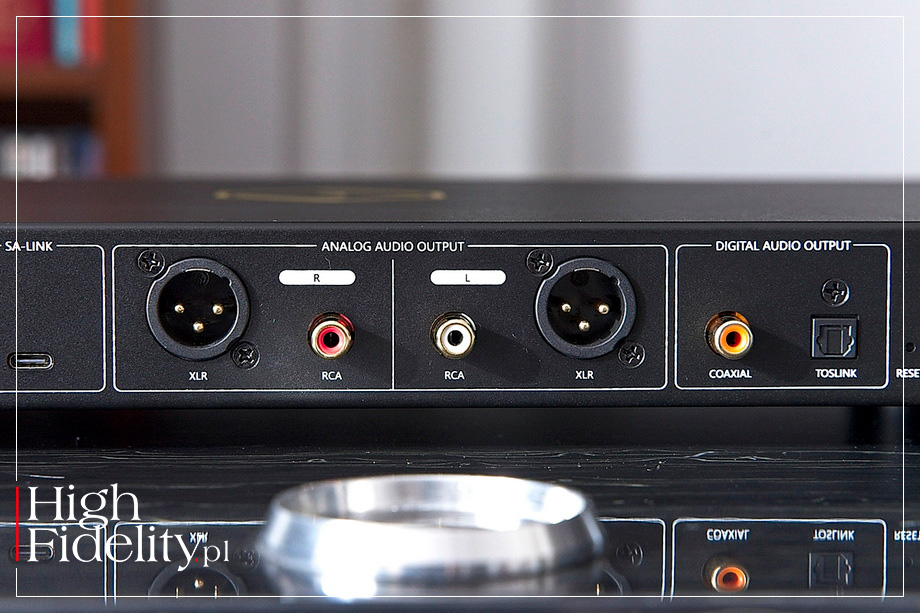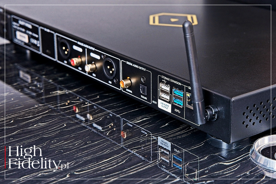 Na solidnym, świetnie wykończonym czarnym froncie z zaokrąglonymi rogami umieszczono tylko nazwę modelu: SL1P (złotymi literkami). Pod przednią krawędzią urządzenia umieszczono niebieską diodę, która po włączeniu pokazuje status urządzenia, a po rozruchu gotowość do pracy. Nie ma tu żadnych zbędnych ozdobników ani jakiegokolwiek wyświetlacza. Z założenia obsługa i odczyt informacji odbywają się z pomocą firmowej aplikacji na telefonie, czy tablecie. Na pokrywie odtwarzacza, centralnie, umieszczono z kolei charakterystyczne złote logo producenta. Mniej więcej dwie trzecie bocznych ścianek pokrywa perforacja zapewniając w ten sposób elektronice pasywną wentylację. Pasywna wentylacja jest o tyle ważna, że gwarantuje bezgłośną pracę urządzenia w przeciwieństwie do klasycznych komputerów czy laptopów, w których zwykle pracują wentylatory. Obudowę ustawiono na czterech eleganckich nóżkach antywibracyjnych. Urządzenie może być niedrogie, ale zupełnie na to nie wygląda, a tego typu nóżki są miłym dodatkiem. Na tylnej ściance znajdują się wszystkie złącza, a tych jest sporo. Jak już wspomniałem, urządzenie może się łączyć z domową siecią przewodowo lub bezprzewodowo. Do połączenia kablem ethernetowym (wśród akcesoriów w zestawie znaleźć można kabel LAN) z przełącznikiem LAN lub routerem służy gigabitowe gniazdo LAN, a w lewym tylnym rogu urządzenia (patrząc od frontu) umieszczono antenę Wi-Fi. Obok znajdziecie zestaw czterech portów USB; dwa w wersji USB 3.0, dwa to USB 2.0. Jedno z tych ostatnich jest oznaczone jako dedykowane wyjście audio, można więc przez nie wysyłać sygnał kablem USB do zewnętrznego przetwornika cyfrowo-analogowego. Pozostałe trzy służą do podłączenia nośników danych (USB), czyli pendrajwów, albo zewnętrznych dysków twardych. W przypadku tych drugich możliwe jest stosowanie wyłącznie tych, które mają własne zasilanie (!). Istnieje również możliwość instalacji wewnątrz urządzenia dysku SSD w standardzie M.2 z interfejsem NVMe o maksymalnej pojemności 4 TB, ale jest to jedynie opcja. Obok portów USB znajduje się sekcja cyfrowa, czyli kolejne (obok USB) cyfrowe wyjścia. Cyfrowy sygnał można bowiem wysłać na zewnątrz odtwarzacza (do wejścia DAC-a) za pomocą kabla optycznego (Toslink) bądź koaksjalnego. Oba umożliwiają przesył sygnału PCM w rozdzielczości do 24 bitów i 192 kHz. W środkowej części tylnego panelu umieszczono natomiast wyjścia analogowe. Mimo, że urządzenie jest niedrogie, dostajemy do dyspozycji zarówno wyjście zbalansowane (XLR), jak i niezbalansowane (RCA). Przy niedrogich urządzeniach, zwykle używanych z niedrogimi kablami ze standardowymi wtykami, może nie ma to aż tak wielkiego znaczenia, niemniej warto wspomnieć, iż gniazda w SL1P są rozstawione dość szeroko (to kolejna przewaga użycia dużo większej obudowy), co ułatwia podłączania interkonektów. W zestawie, oprócz wspomnianego kabla LAN, producent dodaje parę niezbalansowanych interkonektów analogowych a także kabel zasilający AC. Zestaw złączy uzupełnia firmowy SA-Link umożliwiający komunikację z innymi urządzeniami Silent Angel, tudzież gniazdo zasilające IEC z komorą bezpiecznika i towarzyszący im włącznik urządzenia. ‖ WEWNĄTRZ WNĘTRZE SL1 P podzielono na kilka sekcji, a wszystkie osadzono na aluminiowej płycie będącej „podłogą” urządzenia. Osobno umieszczono impulsowy, acz, jak podaje producent, „klasy radarowej”, czyli spełniający wymagania stawiane producentom radarów, niskoszumny, wysoce stabilny zasilacz. Szukając przysłowiowej dziury w całym, jeśli już miałbym wskazać na jakiś brak wyposażenia tego urządzenia, to byłby to brak możliwości podłączenia zewnętrznego zasilacza. Silent Angel ma przecież kilka takowych w ofercie, a za każdym razem gdy jeden z nich zastępował wbudowany zasilacz impulsowy niezależnie od półki cenowej słyszałem poprawę jakości dźwięku. Z drugiej strony, SL1 P to przecież najtańszy model, więc nie wymagajmy za wiele – jak mówiłem, to szukanie dziury w całym. Osobną sekcją urządzenia jest transport plików. Zbudowano go na solidnej (klasy hi-fi, jak pisze producent) płycie głównej, na której zainstalowano sześciordzeniowy procesor (Dual-core Cortex-72 1.8GHz + Quad-core Cortex-A53 1.4GHz), 4 GB pamięci RAM oraz pamięć FLASH (32 GB) na autorski system operacyjny VitOS. Jak pisze producent, płytę główną i obudowę dysku (pamięci FLASH) pokryto grubą warstwą miedzi. Jej rolą jest efektywne odprowadzanie ciepła, co przekłada się na stabilność pracy i minimalizację zakłóceń. Zaawansowane ekranowanie dodatkowo redukuje zakłócenia elektromagnetyczne, a w efekcie przekłada się na wyższą jakość dźwięku. Trzecią sekcją urządzenia jest przetwornik cyfrowo-analogowy dostarczający sygnał do wyjść analogowych. Całą sekcję DAC-a umieszczono na dedykowanej płytce, a tę w aluminiowej obudowie ekranującej. Rolą tego rozwiązania jest minimalizacja zakłóceń pochodzących z sekcji zasilania i obwodów cyfrowych, albo ujmując rzecz inaczej, skuteczna izolacja sekcji analogowej od cyfrowej, czego efektem powinna być jeszcze wyższa czystość i precyzja dźwięku. Silent Angel nie dzieli się informacją na temat producenta, ani modelu kości D/A, jaką zastosował, a wspomniana obudowa uniemożliwią (proste) sprawdzenie tej informacji. ‖ OPROGRAMOWANIE SILENT ANGEL to jeden z tych producentów, których rozwój miałem okazję śledzić niemal od początku obecności na naszym rynku. Firma wykorzystała odpowiedni moment (przypomnę raz jeszcze, że powstała w 2014 roku) i z pomocą wiedzy i doświadczenia inżynierów firmy-matki, Thunder Data, zaoferowała wówczas jeszcze raczkującemu, acz bardzo szybko rozwijającemu się rynkowi urządzeń związanych z odtwarzaniem plików muzycznych, szereg ro