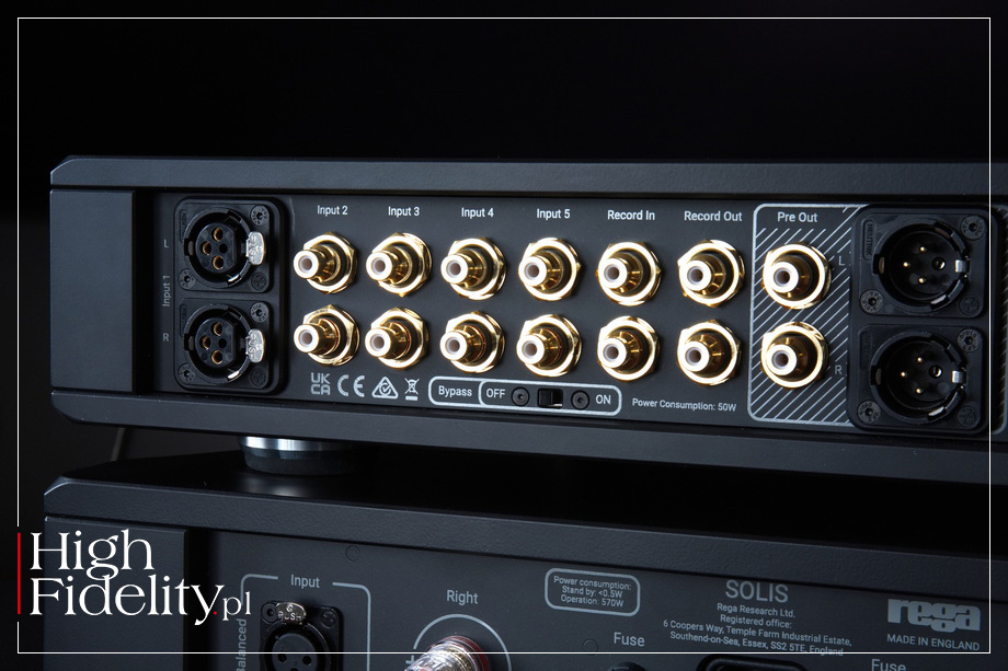 ⸜ Mercury, → www.REGA.co.uk, dostęp: 10.02.2026. Część elementów konstrukcyjnych urządzenia zostało zaczerpniętych z innych komponentów z aktualnej oferty Regi, takich jak zastosowanie tego samego regulatora głośności, co we wzmacniaczu zintegrowanym Osiris oraz analogowych stopni filtrujących po przetworniku cyfrowo-analogowym z odtwarzacza CD Saturn. Urządzenie od razu zostało pomyślane jako referencyjne – przy jego nazwie na stronie www producenta znajdziemy dopisek „REF”. Jak mówiliśmy, to przedwzmacniacz liniowy, ale wyposażony również w przetwornik cyfrowo-analogowy. Oferuje on pięć wejść liniowych RCA, w tym pętlę z wejściem i wyjściem do nagrywania, wejście liniowe XLR oraz parę wyjść z przedwzmacniacza – XLR i RCA. Jest też wyjście z do nagrywania, a jedno z wejść można „ominąć” i wpiąć w ten sposób system Regi w układ kina domowego. Tor audio jest w całości zbalansowany. Każdy ze stopni ma na wyjściu komplementarną parę tranzystorów pracujących w klasie A. Czytamy: