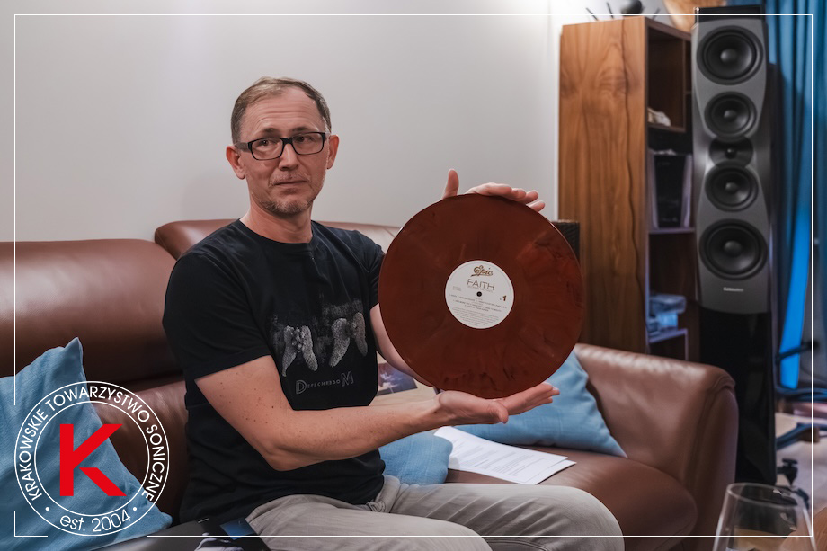 TOMEK L. • Rzeczywiście jest tak, że first press to przeżycie i trzeba do tego inaczej podchodzić. Moja krótka przygoda z winylem pokazała mi, że jeśli to było wydanie Mobile Fidelity czy Analogue Productions to te płyty świetnie brzmiały, ale tylko pierwsze tłoczenia miały powietrze, dynamikę, które mi się podobały. WOJCIECH PACUŁA • Przeżywam tę płytę przy każdym odsłuchu, ponieważ kupiłem jej polską wersję w 1988 roku, kiedy tylko Polskie Nagrania ją u nas wydały. Jest ona wypalona w mojej głowie. Uważam George’a Michaela za wizjonera i to, jak tę płytę przygotował jest dla mnie jakimś takim odpryskiem geniuszu. To dla mnie ważny album. Razem z Bad i Music for the Masses. To odtworzenie też mi się podobało. Uważam tę płytę za wybitnie zrealizowany kawał popowej muzyki. W tym pomieszczeniu nie grało to tak dobrze, jak poprzednio, przy odsłuchu płyt Crystal Disc. Moim zdaniem nowe wzmacniacze w tym systemie każą robić coś kolumnom, czego te nie potrafią, jakby doszły do ściany. To dlatego płyta wydaje się przebasowana. Znam ją z różnych pomieszczeń, ponieważ swego czasu jeżdżąc z kolumnami Pylon Jade 20 HF Edition po Polsce puszczałem ją w wielu salonach audio. Dla mnie to był za każdym razem pokaz możliwości magnetofonu Mitsubishi X-850, który dzisiaj kosztowałby około 650 000 USD, a w studiu były zazwyczaj dwa. Myślę, że to tu było słychać – dla mnie to było – mimo wszystko – ultraplastyczne granie. TOMEK L. + RYSIEK B. • No, co ty mówisz, tu zupełnie nie było przestrzeni… TOMEK FOLTA • Eee, no nie przesadzajcie już, to nie jest jazz czy klasyka i ta konkretna muzyka gra bardzo plastycznie i przestrzennie. WOJCIECH PACUŁA • Ten magnetofon nie gra jasno, a jeśli coś brzmi jasno, to jest wybór artystyczny. TOMEK HATYLAK. • Myślę, że jest bardzo duża spójność między balladami na tym LP i na kolejnych, głównie Older. WOJCIECH • Jak dla mnie – zagrało to zajebście, ze wszystkimi ograniczeniami wynikającymi z czasów, tego egzemplarza LP, setupu i pomieszczenia. II ‖ ORYGINAŁ vs DWUPŁYTOWY LP (czarny) TOMEK L. • Porównanie pierwszego wydania i nowego pokazało przewagę tej nowej wersji. George jest bardziej uwodzicielski, lepiej go słychać. TOMEK FOLTA • Nie wiedzieliśmy, że będzie coming out :) TOMEK L. • śmiech Bas jest trochę lepszy, natomiast wciąż dominuje nad wokalem. Ale – dobra robota, to naprawdę dobra wersja.