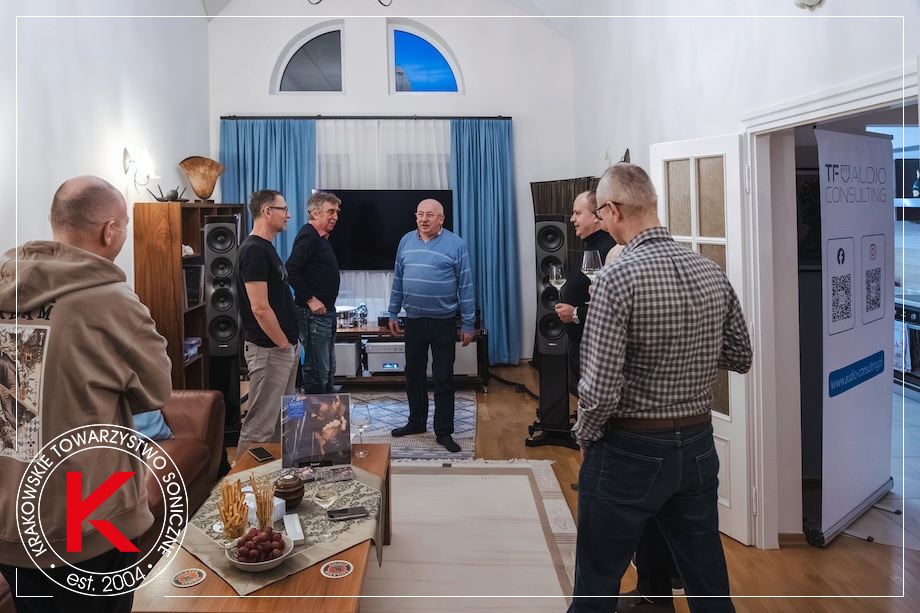 W przeciwieństwie do tzw. eko-winylu, który często powstaje po prostu z przetworzonych resztek starego PVC, bio-winyl opiera się na wymianie kopalnego etylenu na bio-etylen pochodzenia roślinnego oraz wykorzystaniu chloru pochodzącego z wody morskiej. Posiada certyfikat ISCC PLUS (International Sustainability & Carbon Certification), który gwarantuje identyfikowalność i odpowiedzialność łańcucha dostaw. Bio-vinyl został przyjęty przez największe tłocznie płyt, w tym Record Industry i Optimal Media, jako materiał docelowy. ● ▓ ODSŁUCH PLAN NA TO SPOTKANIE był obszerny i bogaty. Punkt pierwszy, czyli przyjęcie w poczet członków Krakowskiego Towarzystwa Sonicznego nowego członka, przebiegł gładko i uśmiechami na ustach – Tomek Hatylak, dziennikarz radiowy, otrzymał z certyfikat № 29. Punkt drugi, czyli odsłuch oryginalnego wydania płyty i porównanie go z trzema nowymi wersjami i polskim wydaniem z 1988 roku wydawał się równie łatwy i przyjemny. Jak zwykle wszystko poszło nie tak, jak to sobie wymyśliłem. Poszło – jak się okazało – znacznie lepiej. Pomyślałem to spotkanie jako okazję do dłuższego posłuchania muzyki i do porównań – miało być wszystko, za co kochamy audio. A w kolejnej części chciałem się, wraz z uczestnikami, przyjrzeć innym płytom nagranym na magnetofonach Mitsubishi. A to wspomniane krążki Jacksona i Depeche Mode, a to The Modern Jazz Quartet i Reunion At Budokan (Atlantic, Pablo, 1981), a to Joe Henderson i State Of The Tenor: Live At The Village Vanguard, Volume 2 (Blue Note, 1985), a to – wreszcie – Patricia Barber z Café Blue (Premonition 1994).