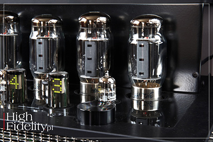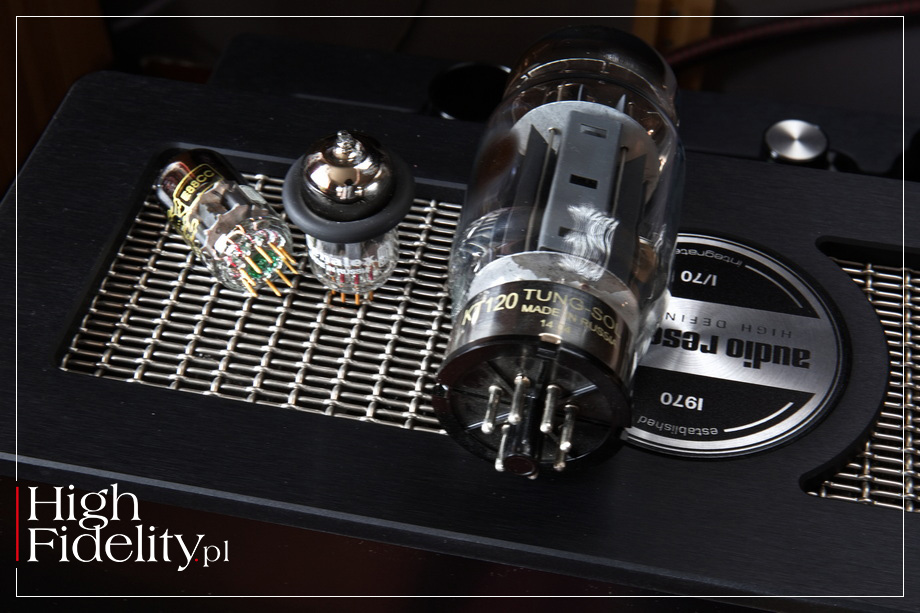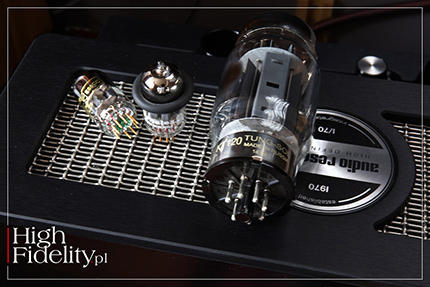 Z tymi wejściami to jest tak, że różnią się one w zależności od wybranego modułu. Producent zdecydował się bowiem na zastosowanie w I/70 wymiennych modułów, które dołączają do trzech stałych wejść – liniowych RCA i XLR oraz liniowego wejścia na końcówkę mocy. Rozwiązanie to pozwala kupić wzmacniacz w wersji „gołej”, a następnie dodawać funkcje w zależności od potrzeb. Unika się w ten sposób płacenia za coś, z czego nie będziemy korzystali. Podstawowy moduł liniowy daje jedno wejście liniowe oraz wyjście z przedwzmacniacza. To drugie można wykorzystać do podłączenia subwoofera lub drugiej końcówki mocy. Moduł DAC przyjmuje sygnał PCM do 384 kHz i DSD128 (USB), , a gramofonowy obsługuje wkładki z ruchomym magnesem (MM) ze wzmocnieniem 42 dB oraz z ruchomą cewką (MC) ze wzmocnieniem 62 dB. Karty te można zamontować bez użycia specjalistycznych narzędzi. Urządzeniem sterujemy albo za pomocą gałek na górnej ściance, albo z pilota zdalnego sterowania. Lewą gałką zmieniamy wejście, a prawą głośność. Ta, jak również wybrane wejście, pokazywane są na wyświetlaczach LED zamkniętych w obudowach mających kształt lamp. Producent nazwał je LexieTube nawiązując tym samym do lamp Nixie, w których katoda uformowana była na kształt cyfr; więcej w teście wzmacniacza I/50 → TUTAJ. TECHNIKA • I/70 oferuje moc 70 W na kanał i korzysta z lamp KT120 (tetrod strumieniowych), pracujących w ultraliniowym układzie push-pull w klasie AB. Lampy działają w układzie z audio-biasem, który zapewnia maksymalne osiągi bez konieczności dokonywania regulacji. W aktywnym przedwzmacniaczu znajdziemy z kolei lampy ECC88. Są to podwójne triody, tutaj w wersji E88CC, czyli o wyższej specyfikacji (niższe szumy, mniejsze mikrofonowanie itp.). Wszystkie lampy pochodzą, niestety, z Rosji – KT120 z firmy Tung-Sol, a pozostałe to Genalex Golden Lion. Obydwie marki należą do New Sensor Corporation; lampy te są produkowane w fabryce Xpo-Pul (dawna fabryka Reflektor) w Saratowie. Brak lamp na rynku audio dotyka wszystkich producentów w równym stopniu, muszą się więc posiłkować zapasami, które już mają. Dodajmy, że sekcja przedwzmacniacza oferuje 75-stopniową regulację głośności. Wyjście słuchawkowe jest zasilane przez lampy mocy KT120. Jak zapewnia producent, zostało ono „zaprojektowane z myślą o wysokiej jakości słuchawkach, zapewniając najlepsze możliwe wrażenia podczas osobistego odsłuchu”. Wyjście to umieszczono nietypowo, bo na górnej ściance. Zazwyczaj lokowane z przodu lub z boku (rzadziej z tyłu), w tym modelu musiało znaleźć inne miejsce, ponieważ w I/70 boki są one ażurowe. Projekt plastyczny I/70 został „pożyczony” z modelu REF330M. Czarne lub srebrne, anodowane górne i dolne cokoły łączą się z modułem transformatorów, zwieńczonym ramą obrabianą z aluminium, siatką i oznaczeniami inspirowanymi modelem Reference 330M. W monoblokach siateczkę wykorzystano tylko na górnej ściance modułu z transformatorami, tutaj jest podstawą projektu plastycznego. Zapewnia ona, przy okazji, bardzo dobrą cyrkulację powietrza, co wydłuża czas pracy podzespołów biernych.