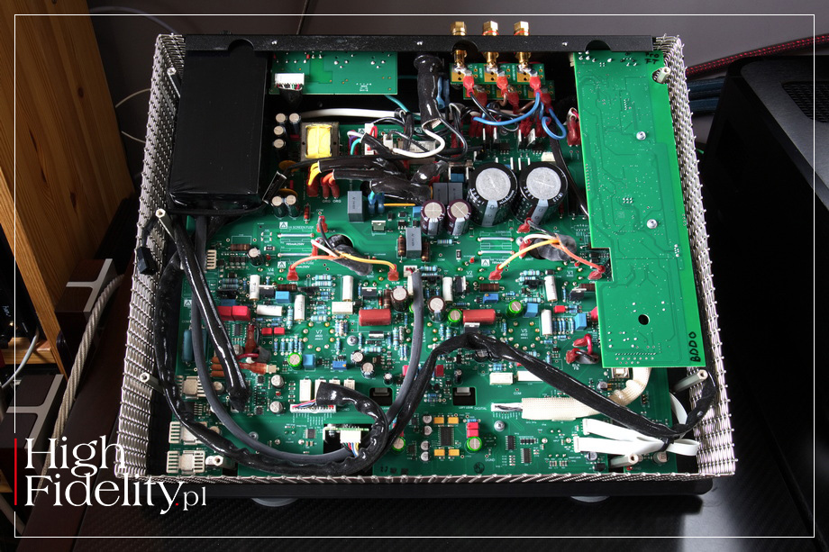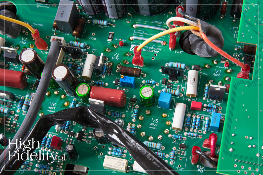Układ elektroniczny zmontowano na dużej płytce drukowanej, na której znajdziemy porządne, naprawdę bardzo dobre podzespoły bierne, jak foliowe kondensatory, na przykład Vishay, Wima, z kolei elektrolityczne to produkt firmy Nichicon; są też i precyzyjne oporniki. Na wyjściu głośnikowym zastosowano te same transformatory, co we wzmacniaczu Reference 75. ▓ ODSŁUCH JAK SŁUCHALIŚMY • Wzmacniacz Audio Research I/70 testowany był w systemie referencyjnym HIGH FIDELITY i porównywany był do systemu dzielonego, złożonego z przedwzmacniacza lampowego Ayon Audio Spheris Evo i tranzystorowego wzmacniacza mocy Soulution 710; osobny podsłuch poświęciłem na porównanie go ze wzmacniaczem Aurorasound HFSA-02.