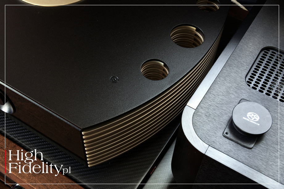 A kiedyś Zero, kto wie… Podobny sposób nazewnictwa stosuje japońska firma Techdas w swoich gramofonach. Przy okazji – ciekawe, czy znajdą się w niej kiedyś źródła sygnału w rodzaju transportu/odtwarzacza plików oraz płyt CD (lub SACD). A może zewnętrzny przedwzmacniacz gramofonowy lub DAC? Wszystkie trzy urządzenia ze „złotej” serii dzielą tę samą estetykę, wyróżniającą je spośród innych produktów tego typu. Za projekt plastyczny odpowiada, współpracujący z firmą, Piotr Jegiełłowicz ze swoją firmą Jagiellowicz Design. To projektant, który ma na swoim koncie wiele nagród, w tym Red Dot, z lat 2015, 2018 i 2022, If Design Award, za 2016 i 2017, oraz A’ Award Design z 2023. W opisie testowanego urządzenia czytamy: