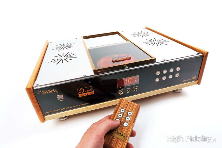 Both mechanical and electronic concepts remained unchanged. I got rid of two power transformers together with accompanying diodes, capacitors and voltage regulators. Also a power inlet with a fuse was no longer needed. It was replaced with a 5-pin socket for battery charging (Amphenol) and a mechanical on/off switch with an indicator. The space that was “saved” inside was used for 11 units of gel batteries that supply power to mechanics (motor), and electronics, including all integrated circuits (decoder, DAC, and so on). Batteries supply power also to a tube output stage. The NOS DAC chip is coupled with tube stage via a custom made transformer (made by one of renowned European manufacturers). For battery powered tube output stages I prefer to use some types of (NOS) tubes like: 3A4, DL95, 3Q5, DL33. In this particular unit delivered for test I used Mullard DL33 tubes. Output capacitors are copper Jensens filled with oil. I also used a new type of master clock shielded with copper enclosure. Fully charged batteries allow for 5,5 hours of continuous work, and up to 7 hours if listening is divided into few sessions. A blinking LED placed on The remote control indicates that batteries need recharging. From the moment this LED starts to blink user still has 40-60 minutes of listening. During listening sessions charger has to be disconnected from the CD Player. One must not charge batteries when the Player is ON! (it might cause a serious damage to the Player). Charger's plug sports sort of a latch. When connecting it to the Player user must connect it in a such a way that this latch is on the right side (looking from the back side of the Player). Do not twist the plug inside socket – one should check the proper placement before plugging the charger in. Charging takes 10-12 hours and its finish is indicated by a green light turning on. It is placed next to the main, blue one. After green light comes on you need to keep charging the Player for another 30 minutes, then turn the charger off with its switch, and then unplug it from the Player. ![]() I am not so sure if we should call this model “new” as it uses a lot of elements that were used already by the first devices of that kind ever build. The transport mechanism is a NOS Philips CDM-2 with a swing arm system using a counterweight (like a tonearm). Mr Dubiel tried a CDM-1 mechanism first but finally he chose almost identical CDM-2, because it was build of a material (resin) that damps resonances more effectively than aluminum used for CDM-1. Another advantage of CDM-2 is a laser of the same type that was used also for next generations of Philips' transports so its availability (if replacement is needed) is surely better. CDM-2 sports a one-beam swing arm to be exact. Another advantage of CDM-2 is good quality linear motor (later models used commutator motors). This type a transport mechanisms were used from the beginning by Philips and Marantz. Marantz used CDM-2 for its CD-25 and CD-45 Players, and for CD-65 in 1985. A DAC chip Mr Dubiel decided to use is of equally vintage sort – it's a TDA1541. It's a second DAC chip ever released by Philips, but their first 16-bit one. Usually it was used in combination with a digital filter SSA7220P/A, that was responsible for a 4 times oversampling (without noise shaping filter). Marantz used it for the first time in 1985 for their CD-65. And finally tubes – for the output stage Mr Dubiel uses a simple low-pass filter and amplification based on triodes. In this particular player the whole circuit is powered with batteries. That is the main difference between previous and reviewed versions (you can read our review of the previous version of Nirvana HERE). Remark: output signal is higher than standard 2 Vrms and a particular value depends on the type of tubes used for a particular unit. The signal is not attenuated. The unit under review delivered signal at 3,6 V level. As I couldn't find a name of this battery powered version anywhere, I decided to name it myself, so from now on it should be called: Nirvana Battery. It's not the first and probably not the last time when I get to play a Godfather for a new audio product. ![]() Recordings used during the test (a selection)