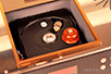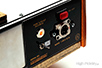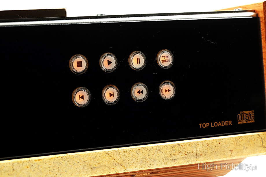 Sound quality is really good. It is easy to tell that whoever prepared this material did a good job and had a good understanding of this music. It is a large scale sound, slightly “soft”, with greatly built both range extremes. Treble is truly vibrant, lively but never harsh, and bass goes down really deep. This type of presentation truly fits the type of music Mr Duda plays. It's a really cool music with amazing drive and the sound quality is also very good. The only thing the sound lacks is a true palpability of images, of sound sources, so something that krautrock from 1970ties offered in plenty. But, as I already mentioned in my review of Robert Kanaan's album Continuum, nobody really records music this way anymore. Sound quality: 8/10 ![]() ![]() Such a complex and time consuming design might have been built only by a very small company – none of the “giants” of audio market would decide to release such a product. Just a casing comprises of many elements that combined together create an extremely rigid, mechanically damped shell. Main chassis is made of polished, stainless steel sheets. A marble slab is screwed from below to the bottom of the device (just like in German Audionet CD Players), and a thick plywood plate is glued to it (you might want to compare that solution to the one used by Japanese company SPEC, see HERE). Side panels are made of wood – that will remind one audio devices from 1970 ties and 1980ties, when wood panels very popular. A front panel is made of polycarbonate, with some print placed on its back side. Underneath there is a large, alphanumeric, orange display with four LED modules. Since there are only four modules one can ready only track and index number on it (the latter is usually not used today, but it is particularly helpful when it comes to classic music), or track time. Below display there are two amber LEDs, indicating display's status. Third comes on when “pause” function is used. There are two ways to control the device – either by using push-buttons on the front panel, or by using a remote control. The latter has a wooden enclosure and push-buttons identical with those on front of the Player. Buttons on front of the device are backlit. On the left side there is a red LED that flashes whenever Player accept commands from a remote. Few more information about usage of batteries. Batteries supplying output tubes deplete first. Drive might still be spinning a CD while the sound is already gone. That's fine, but I wish that an information about how much time on batteries we still have left was presented in some more visible spot – on the top cover for example. It would be nice if the message was also unambiguous – a row of LEDs or an alphanumeric display. Also when it comes to a device at this price I would expect an automated charging with some relays that could disconnect charger from Player at the moment Player was switched on. The whole process of charging is not particularly difficult as it is, but if one pays a certain amount of money one expects also some level of convenience. The external charger is a large, plastic box with power cable on one end, and much thicker cable leading to the Player on the other. This cable connecting Player with charger is not particularly long so both devices need to placed quite close each other.