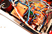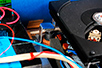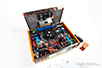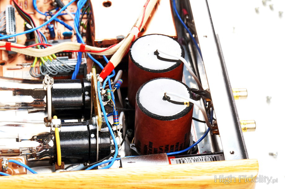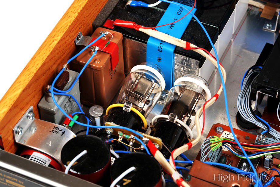 Mr Dubiel is a fan of the first Philips CD drives. He buys old Philips CD Players just to retrieve only CD Drives (with controllers). For Nirvana Battery he decided to use a CDM-2. The drive sits on springs and on cork washers. There are rubber tubes placed over springs to damp their horizontal vibrations. Behind the drive there is a PCB with decoder and DAC chip: Philips TDA1541, that receives signal via I2S line. This is a 16-bit no oversampling chip. Next to it one will find precise ERO capacitors, that work as I/U converter and low-pass filter. A SAA digital filter widely used by Philips and Marantz in the 1980ties this times is not used. The TDA chip works though without oversampling and without digital filter. Above this PCB there is another with copper shielding – this is a precise word clock - Clapp oscillator. This type of oscillator is used in short wave radios for its low jitter. Similar oscillator was used for a previous version of this Player, but for a Battery version a totally new clock was created. A decoded signal is sent to a two-stage output stage and analogue filter. It is based on direct heated tubes. For this particular project Mr Dubiel chose Mullard DL33 tubes, but as alternative he could use one of the following types: 3A4, DL95, or 3Q5. All of them were designed with battery power supply in mind. Mullards used in the reviewed unit were manufactured in 1943 in a British factory later destroyed by Nazi bombs. This factory was never rebuild. There is a coupling transformer between DAC and output tubes, which is also custom made for Dubiel Accoustic. Copper Jansen capacitors couple tubes with RCA output. Another interesting oil capacitors are used for anode voltage decoupling – one was made in Soviet Union, other was made by Unitra Telpod. This factory also doesn't even exist anymore – fancy condos took its place. |